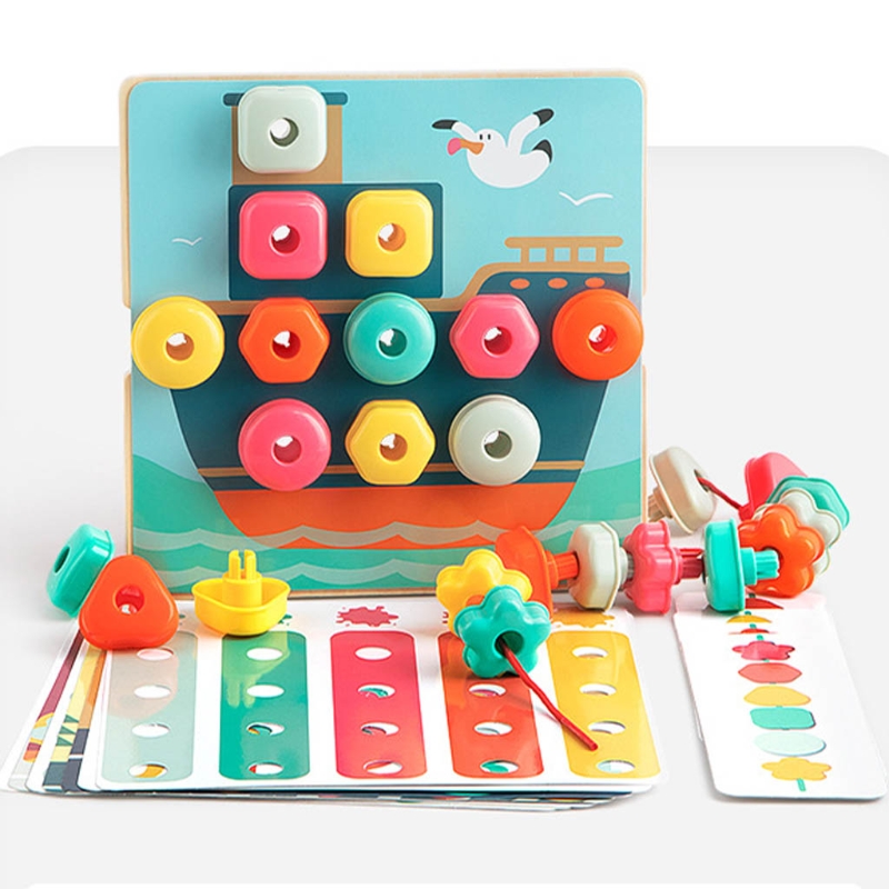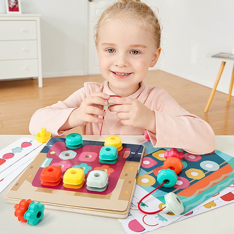 Эти деревянные игрушечные шнурки с помощью красивой Прочной Деревянной иглы, а отверстия в дереве достаточно большие, чтобы их проложить. Дети могут узнать, как прикрепить веревку после нескольких усилий.