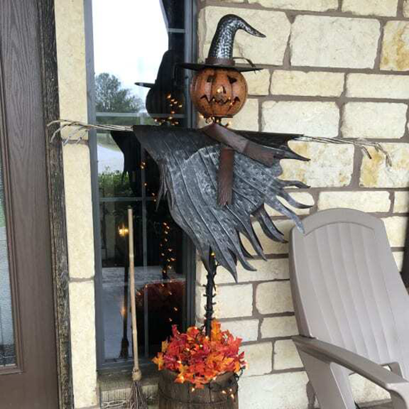 3. Пугало имеет головку фонаря Джека и шляпу ведьмы, сделайте ваш сад более привлекательным на Хэллоуин.