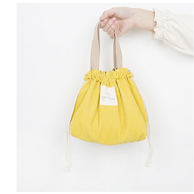 Вельветовая Портативная сумка для ланча на шнурке, однотонная сумка для пикника, сумка для пикника, контейнер для хранения еды