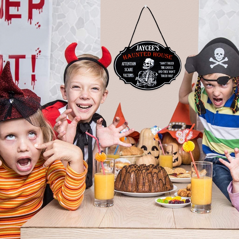 Подвесной знак на Хэллоуин идеально подходит для тематическая вечеринка Хэллоуин и так далее, добавляя больше удовольствия и создавая атмосферу праздника.