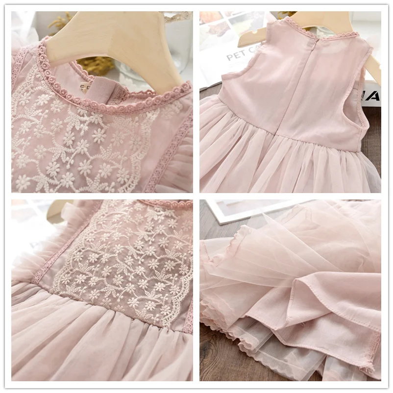 Детское кружевное платье без рукавов летнее Сетчатое с цветочным принтом для