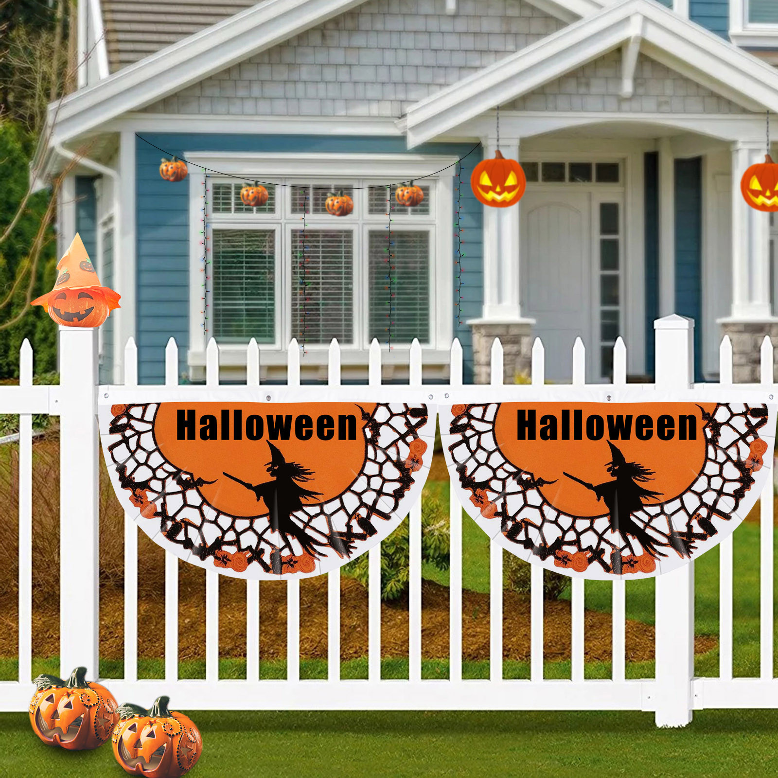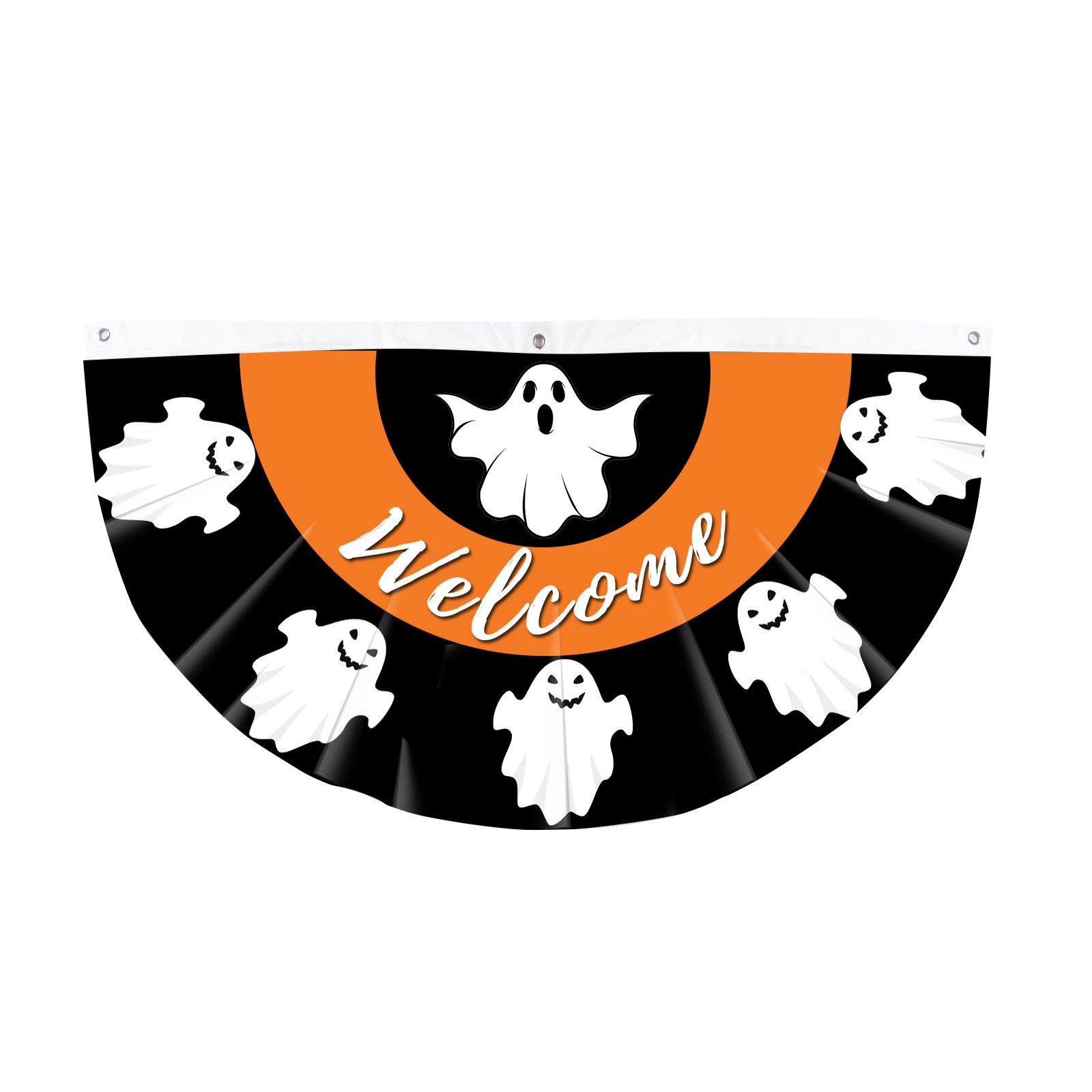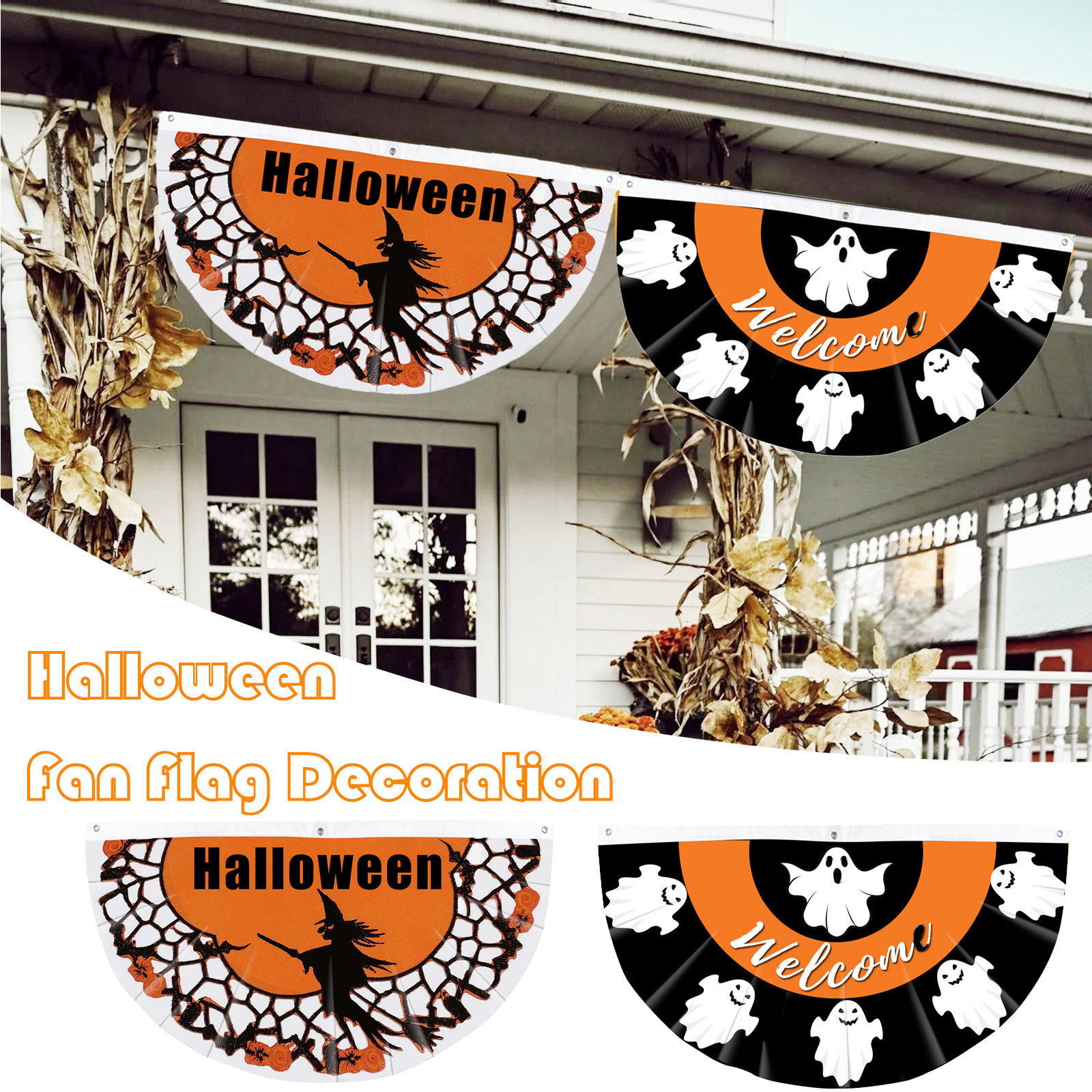 Флаг веера ХэллоуинаБаннерУкрашения флажкиУличныйПринт ужас с холстом