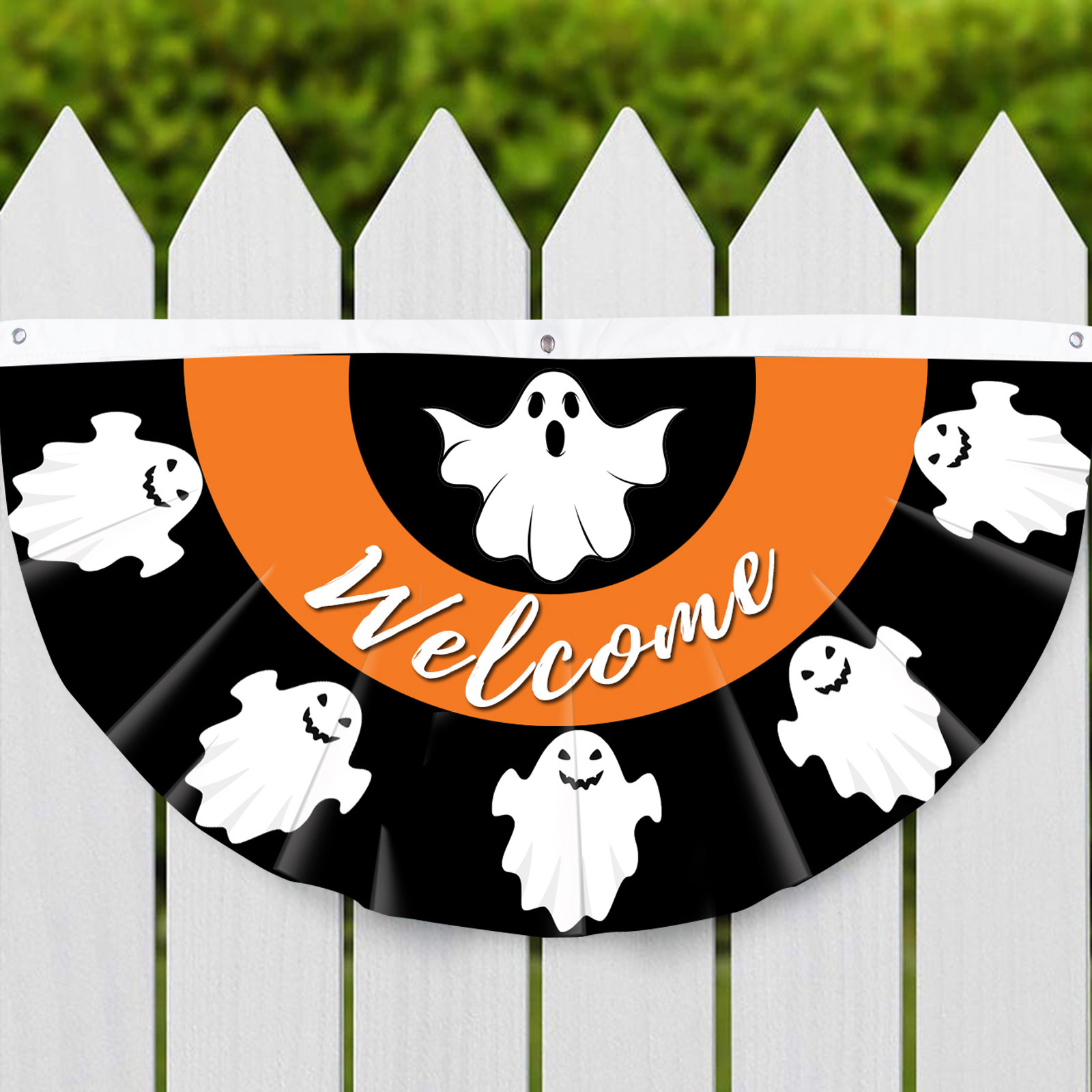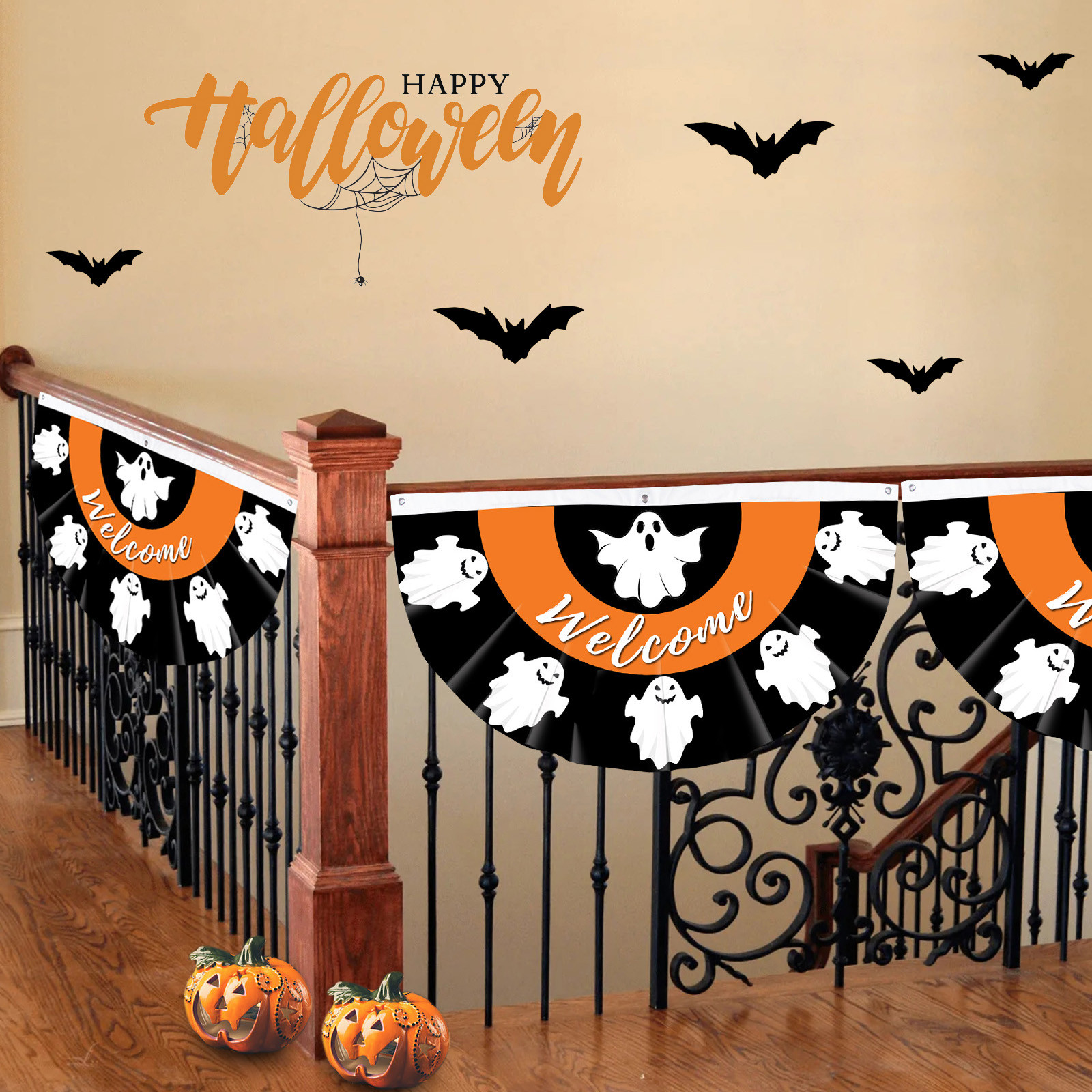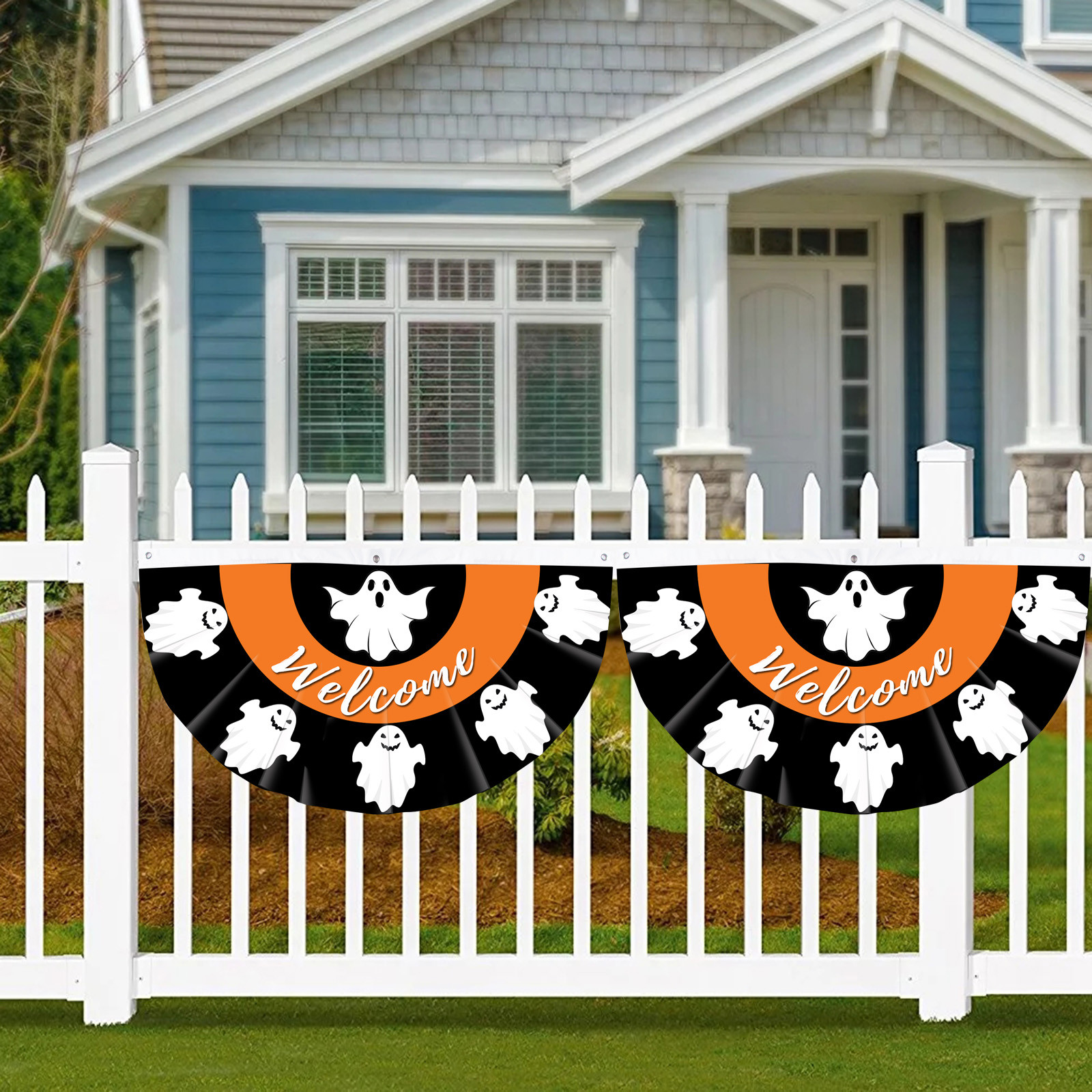 Флаг веера ХэллоуинаБаннерУкрашения флажкиУличныйПринт ужас с холстом