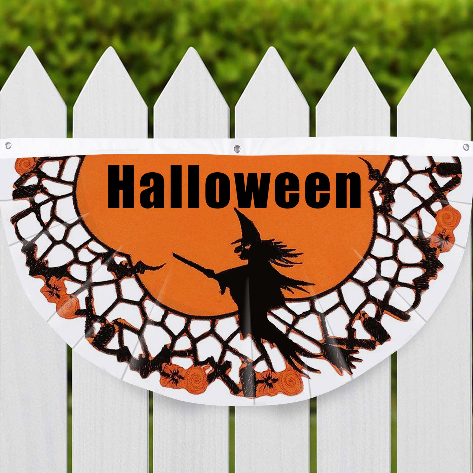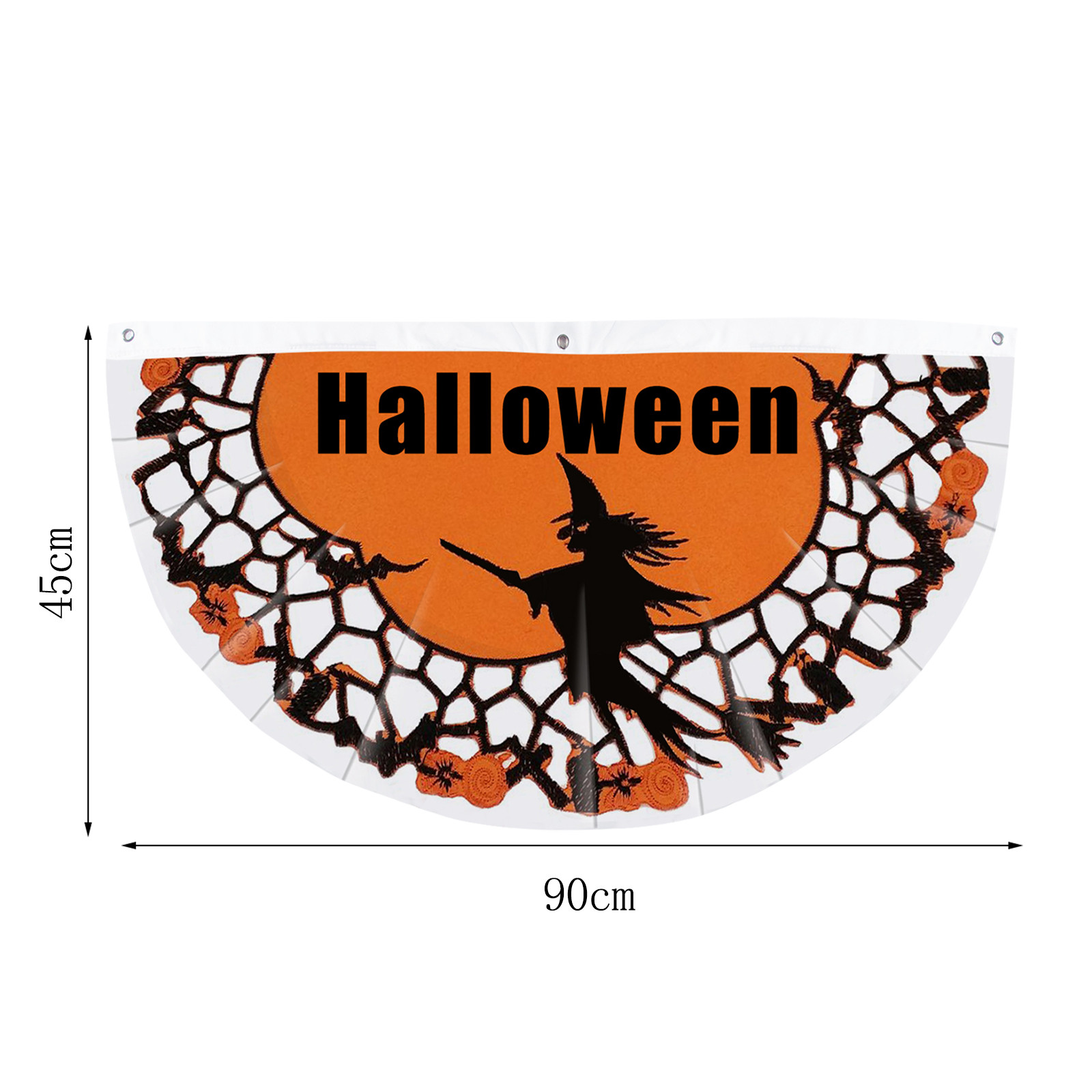3.Двойные Прошитые по всей кромке и усиленные холщовой головкой и тремя латунными люверсами. Через люверс вы можете легко и надежно повесить плиссированный флаг на Хэллоуин, где вам это нужно.
