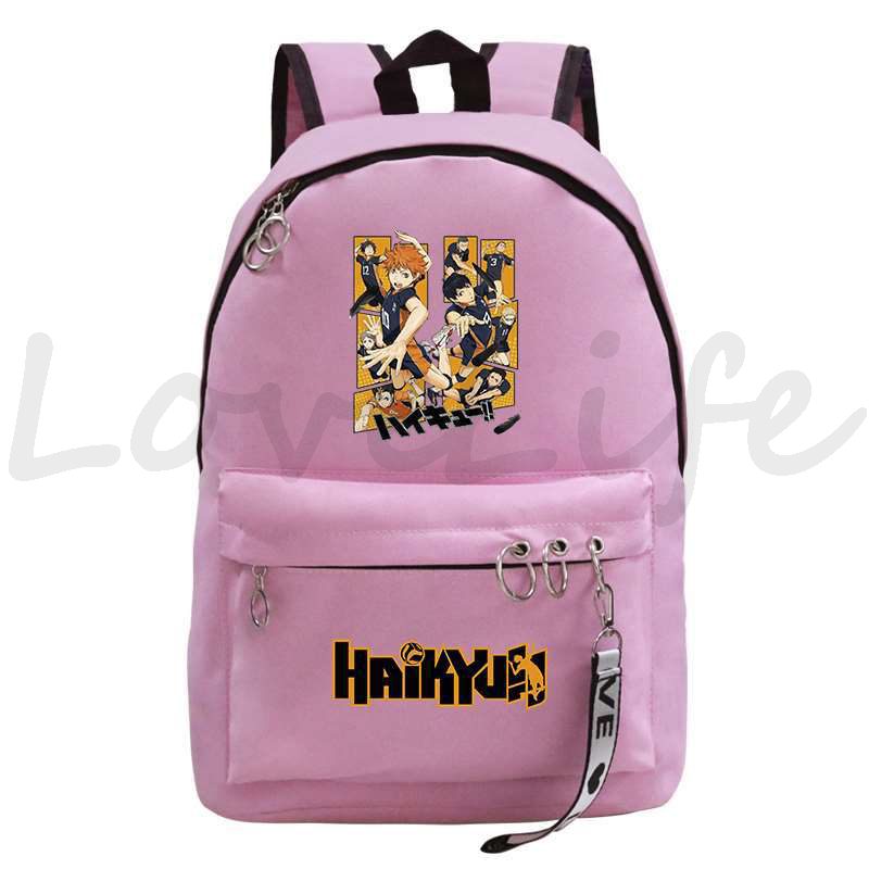 Аниме Haikyuu холст рюкзак для школьниц розовый книжный мешок подростков Дорожная сумка на молнии Haikyuu! Школьные сумки Mochila Childs Backbag