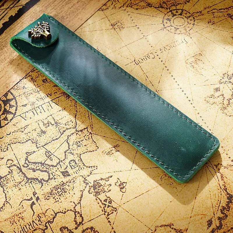 Держатель для ручек из натуральной кожи, одна Сумочка для ручек и карандашей чехол с кнопкой для шариковой ручки