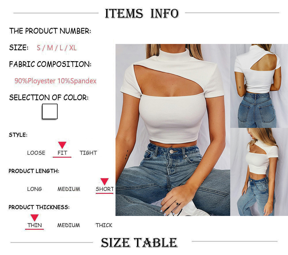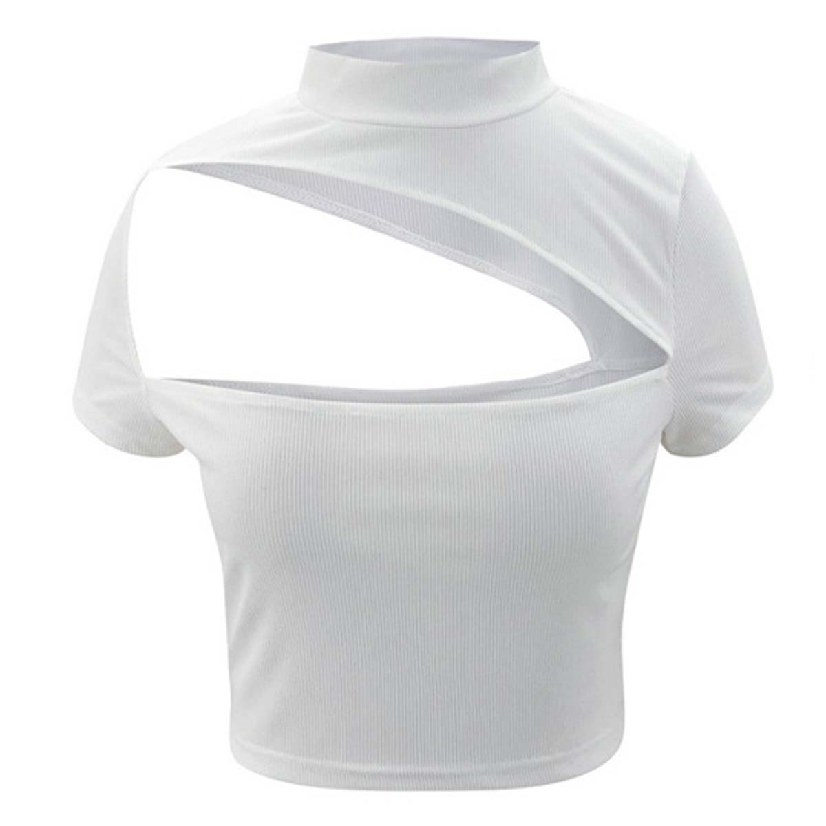 Women's Cut Out Crop Tops Sexy Solid Color Halter Short Sleeve Blouse Slim Fit Knitted T-Shirt