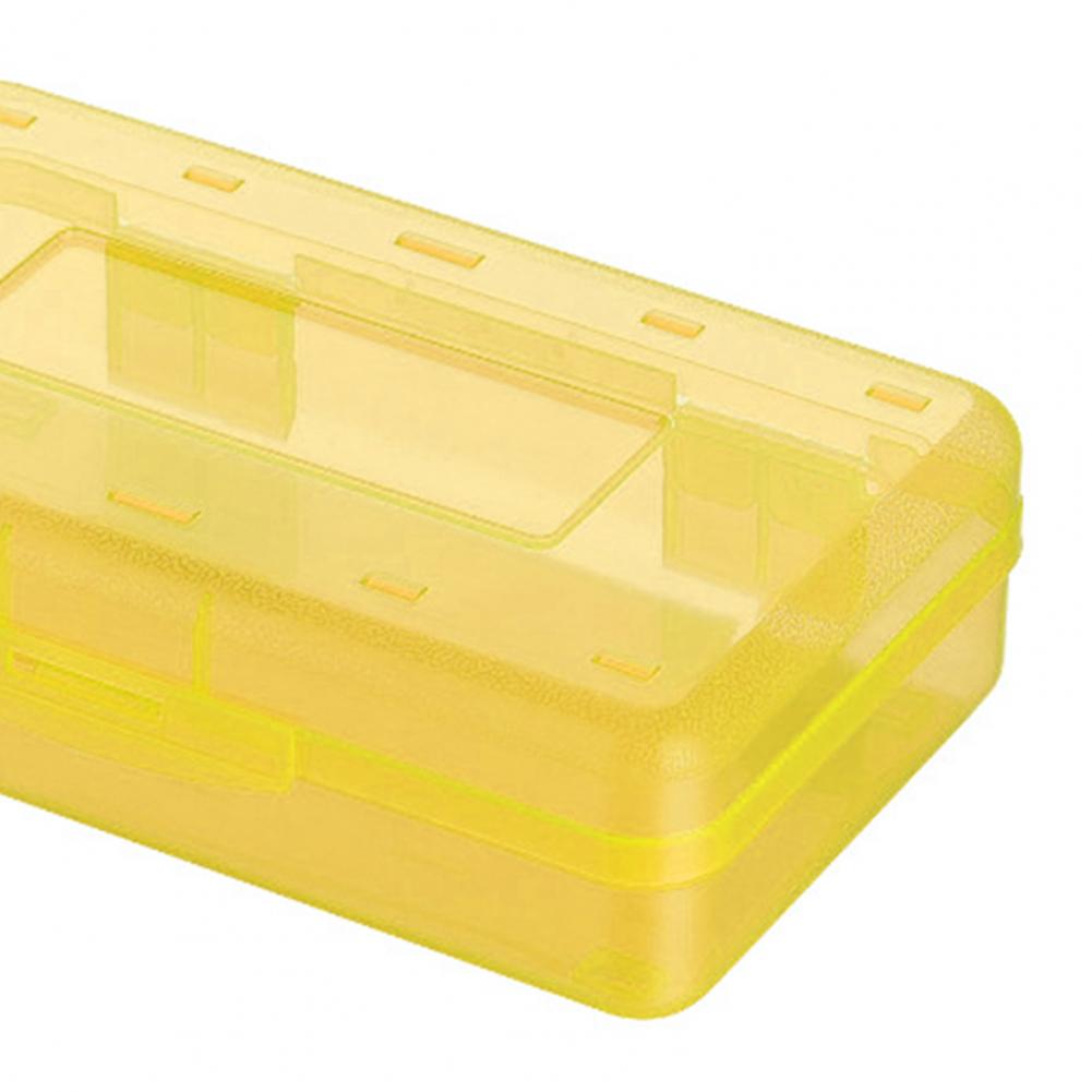 В этой коробке используется защелкивающаяся крышка, которая плотно закрывается, поэтому, когда вы положите ее в сумку, не будет проблем с выпадением ручек или других канцелярских принадлежностей.