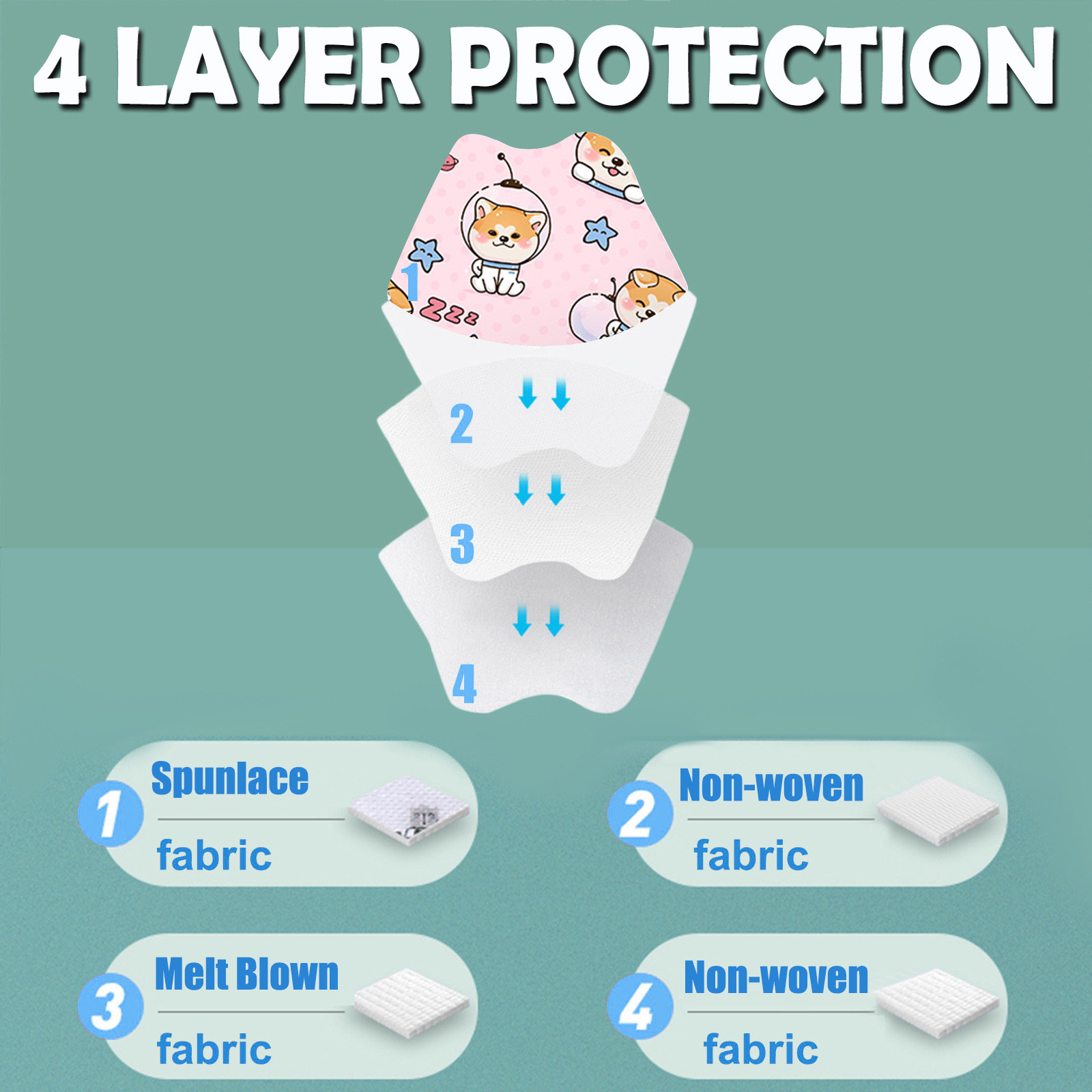 Детская одноразовая маска для лица, 4 слойные маски для ушей