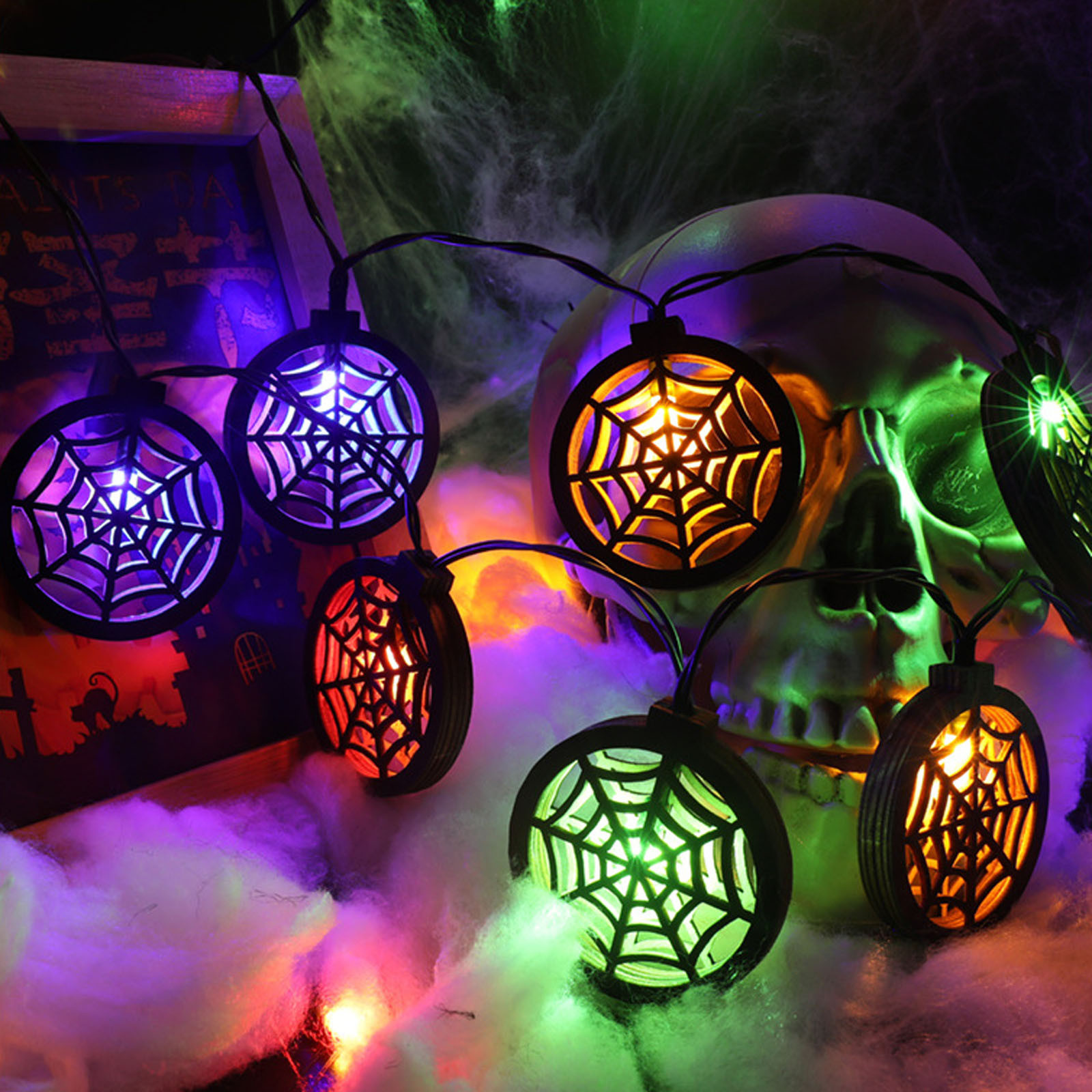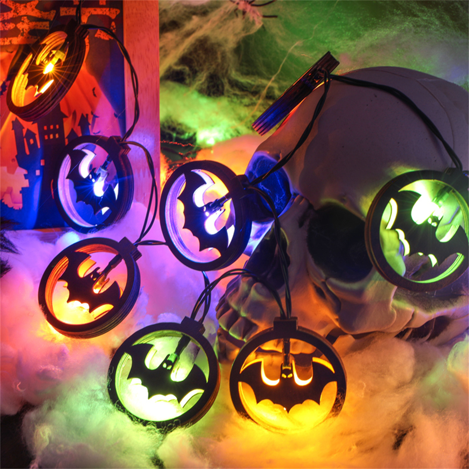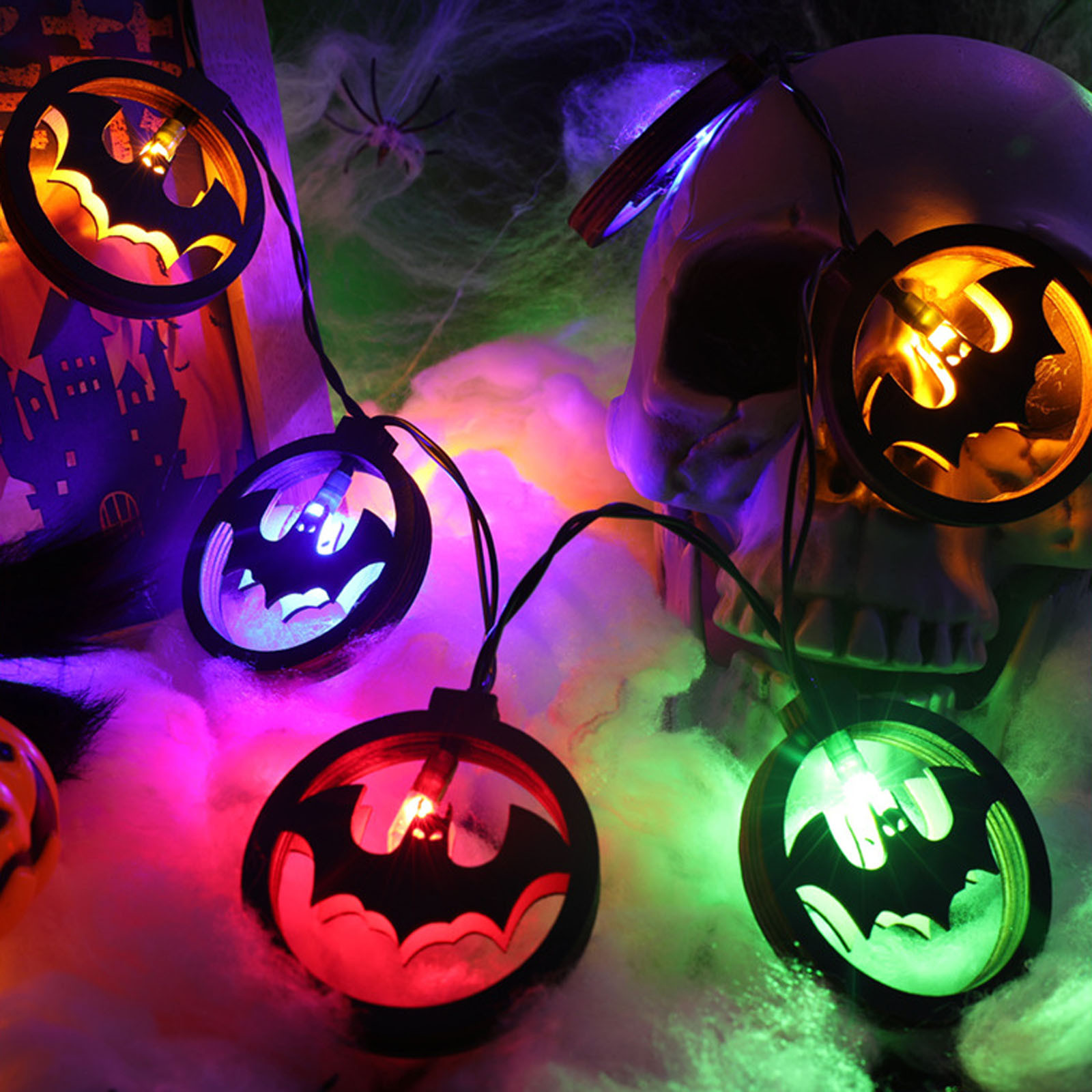 Светильник на Хэллоуин, летучая мышь, паук, аккумулятор, светильник на Хэллоуин, атмосферный декор, светильник