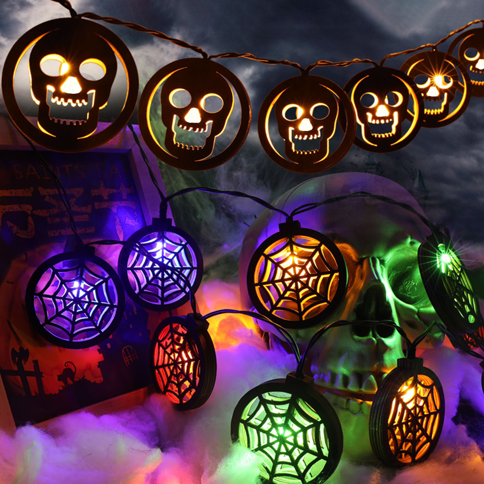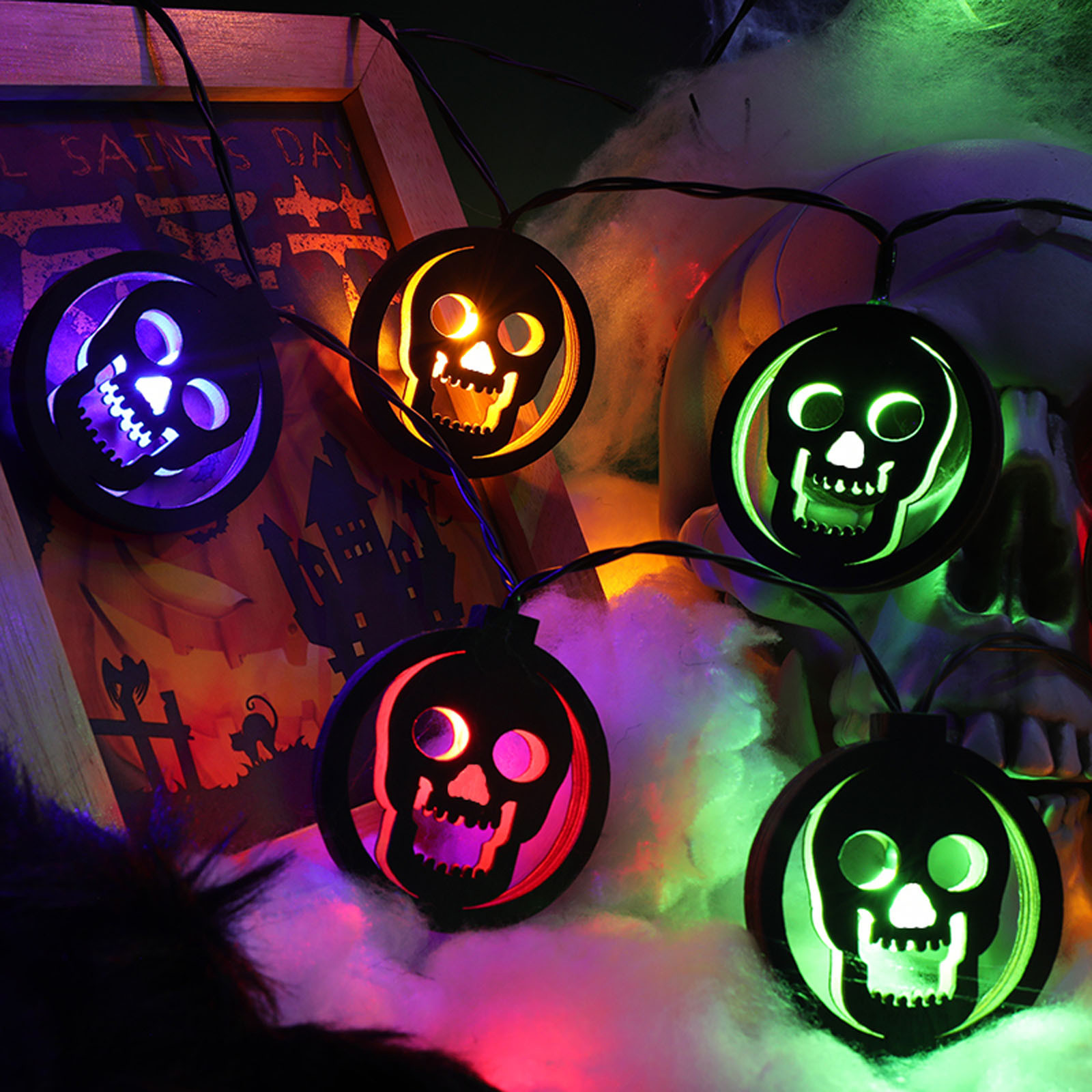 Этот светильник светодиодный светильник на Хэллоуин является идеальным украшением, может быть украшен в любом месте, маленький и красивый, он сделает каждый Хэллоуин полон радости и страха.