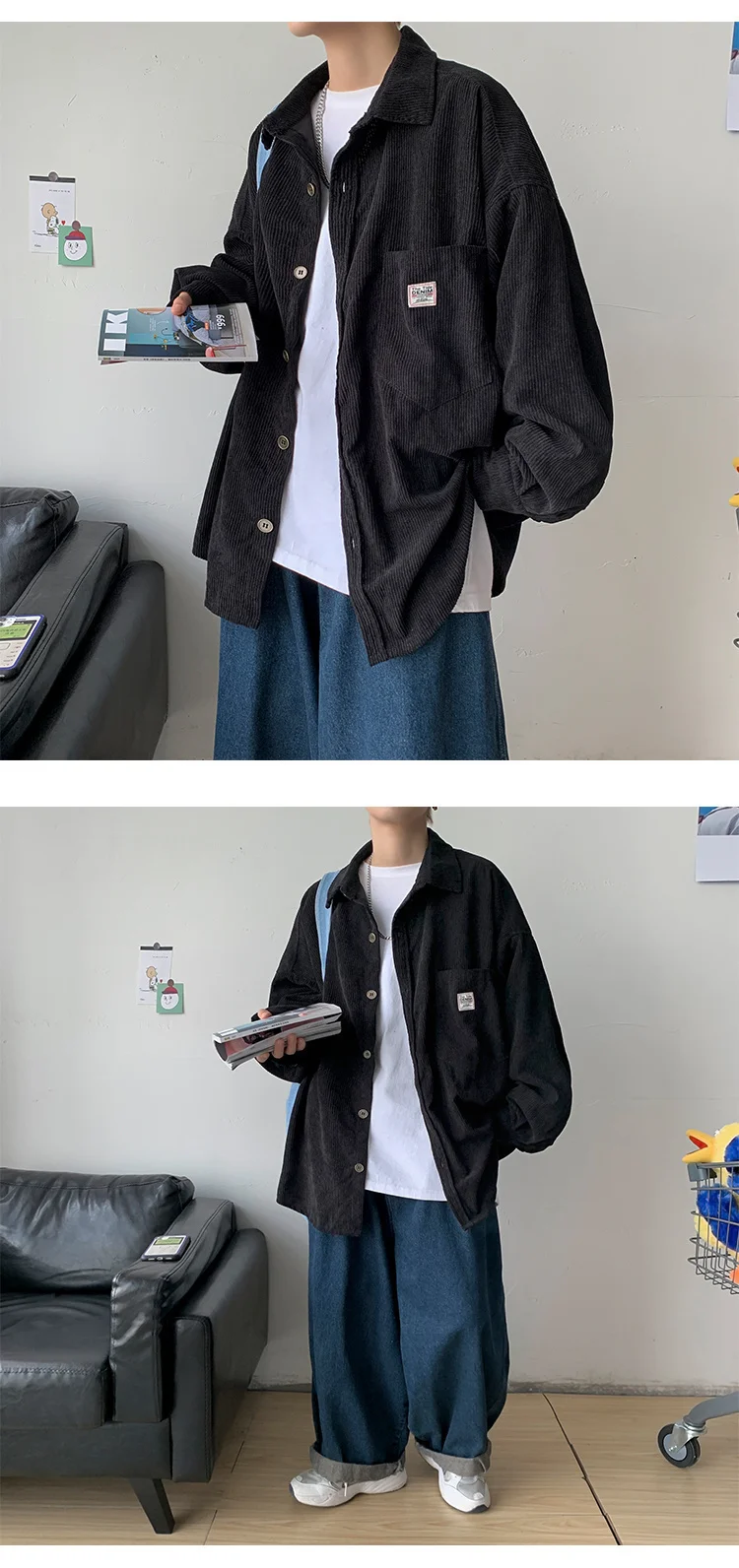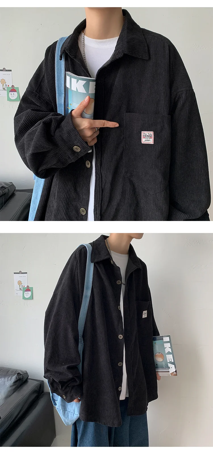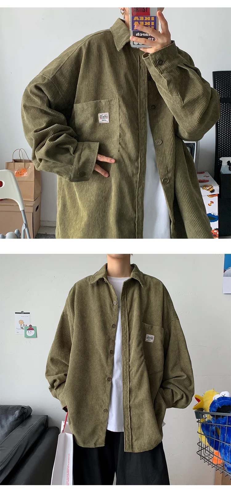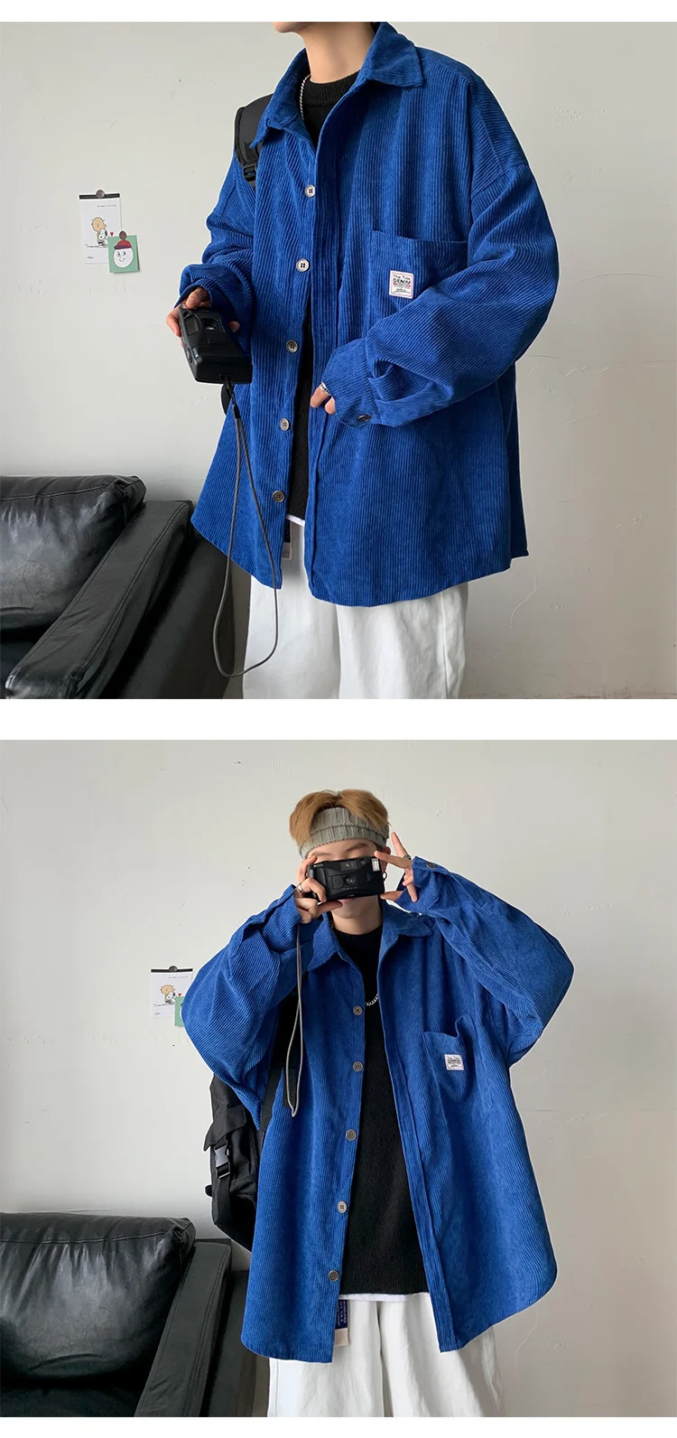 Рубашка мужская Вельветовая свободного покроя с воротником лацканами | Мужская