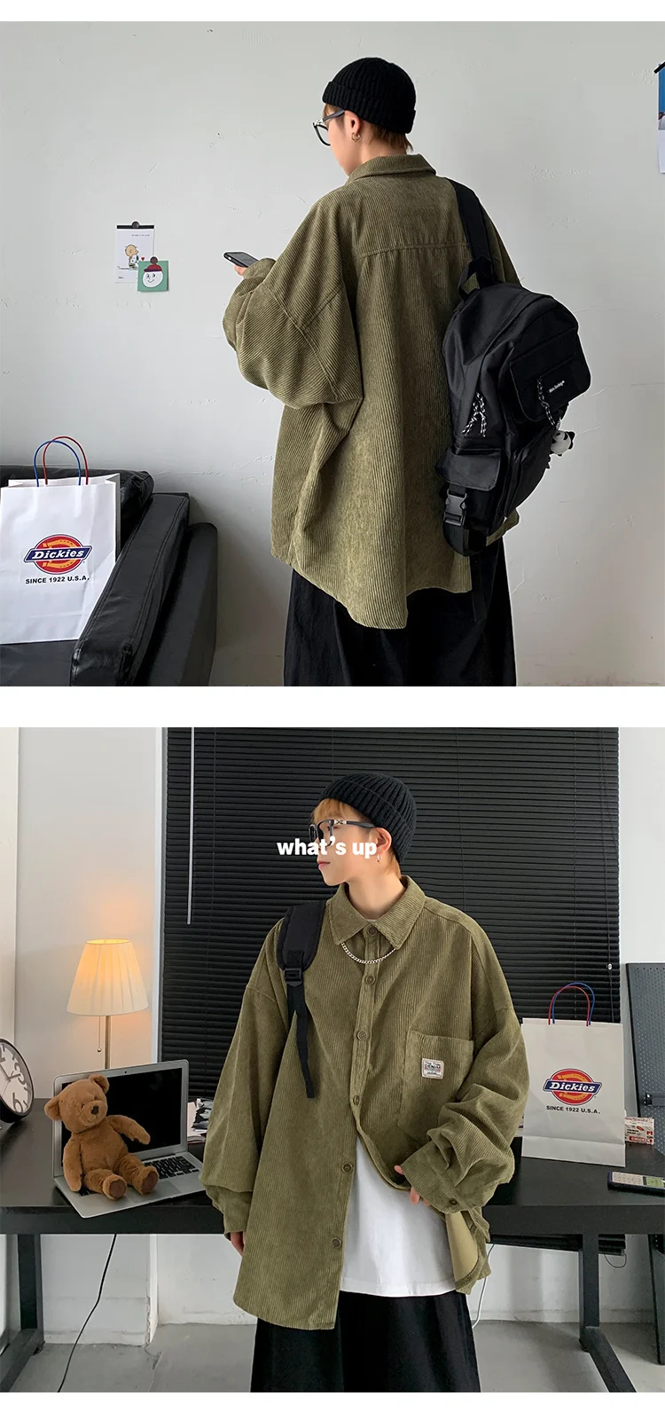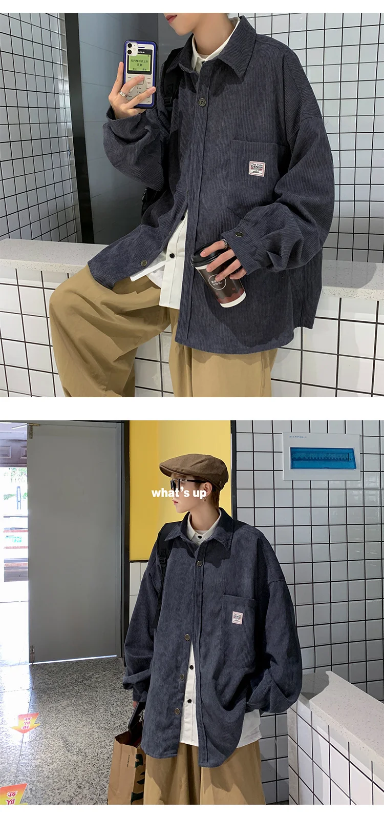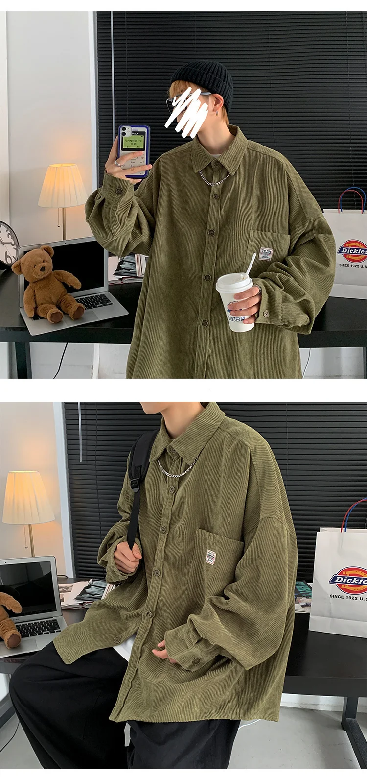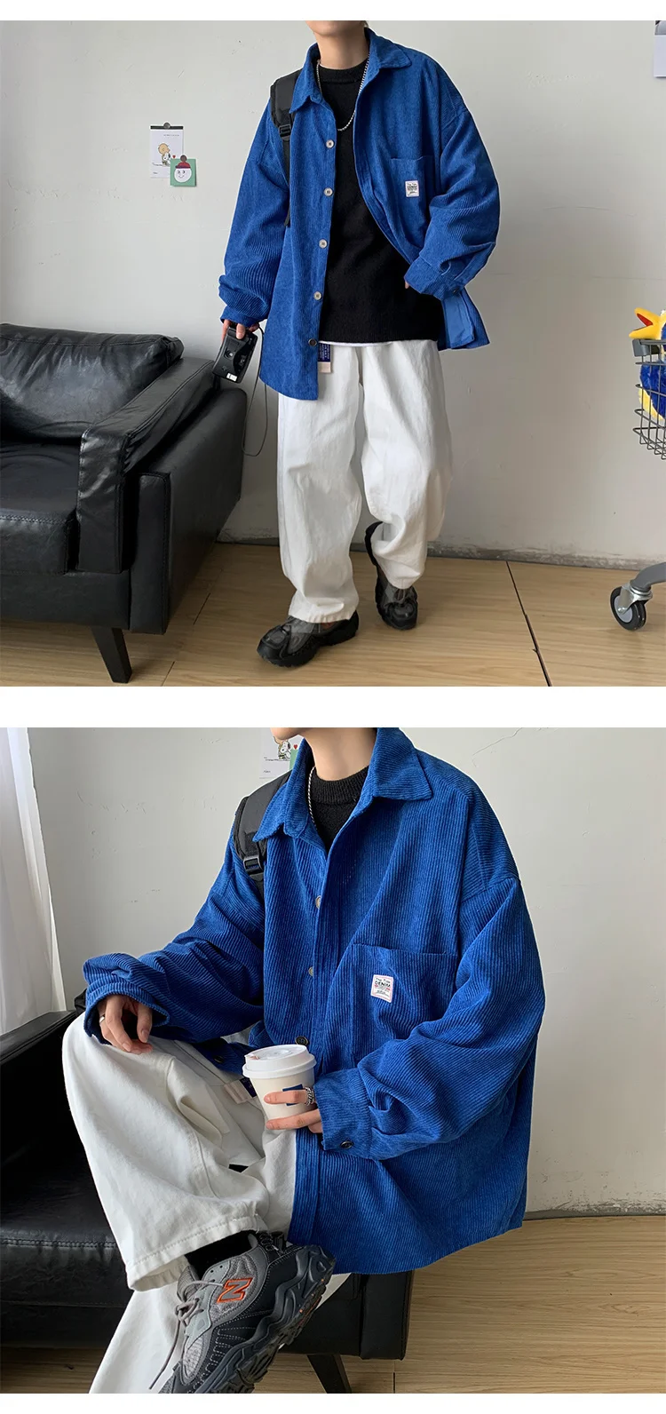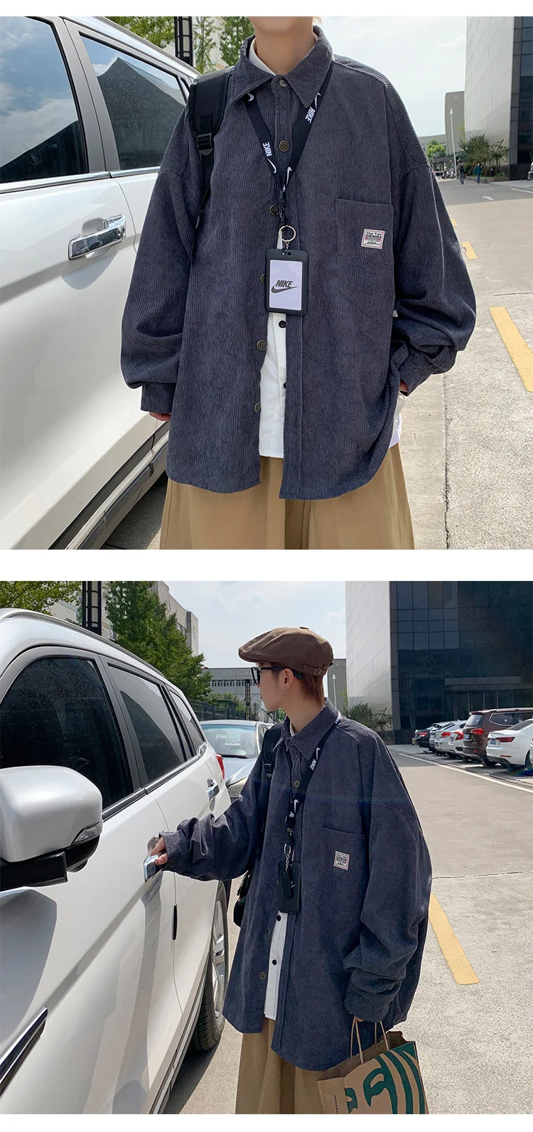 Рубашка мужская Вельветовая свободного покроя с воротником лацканами | Мужская