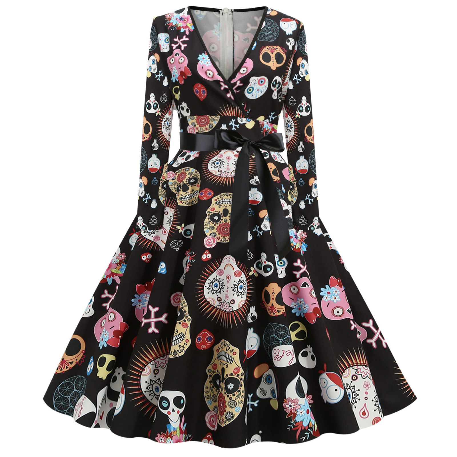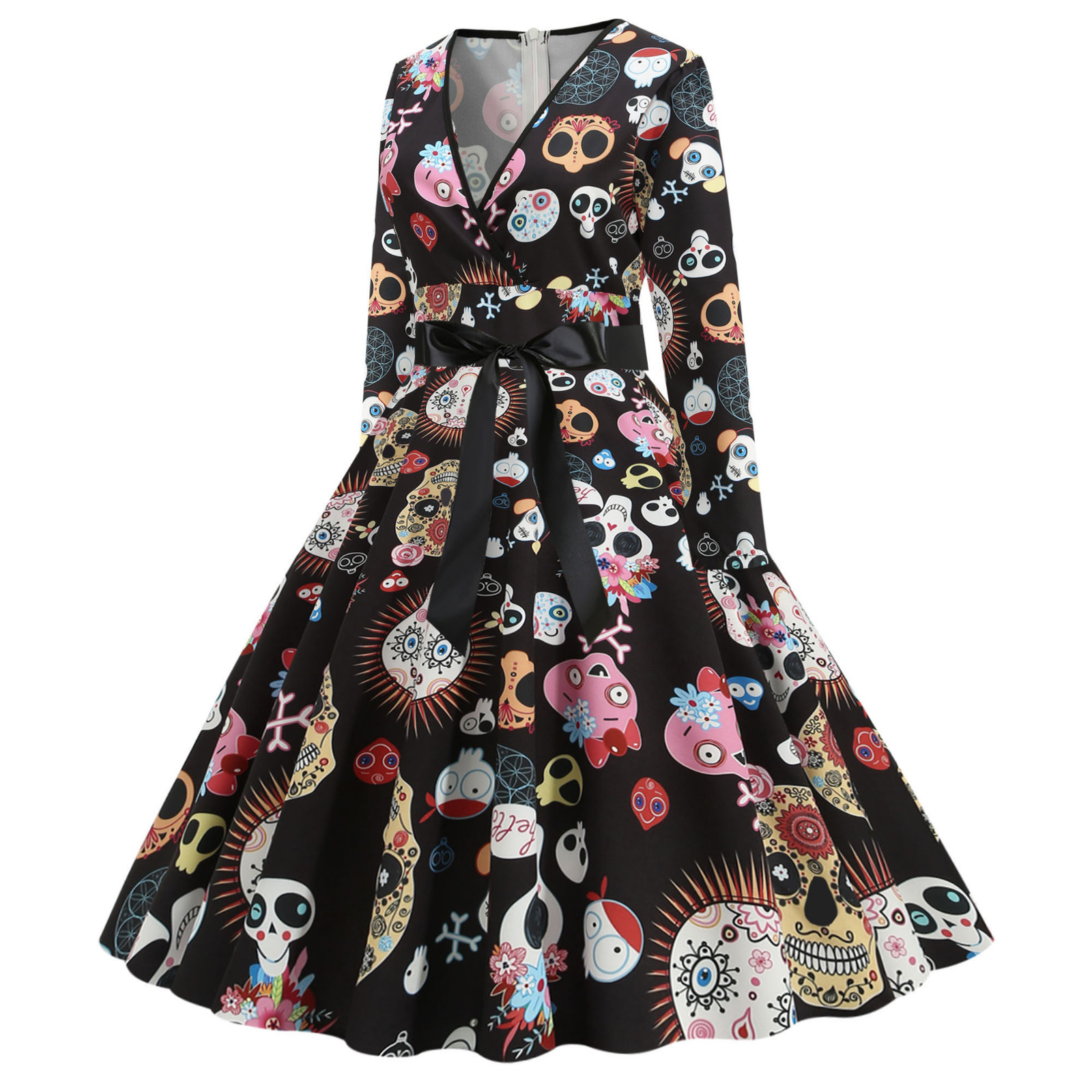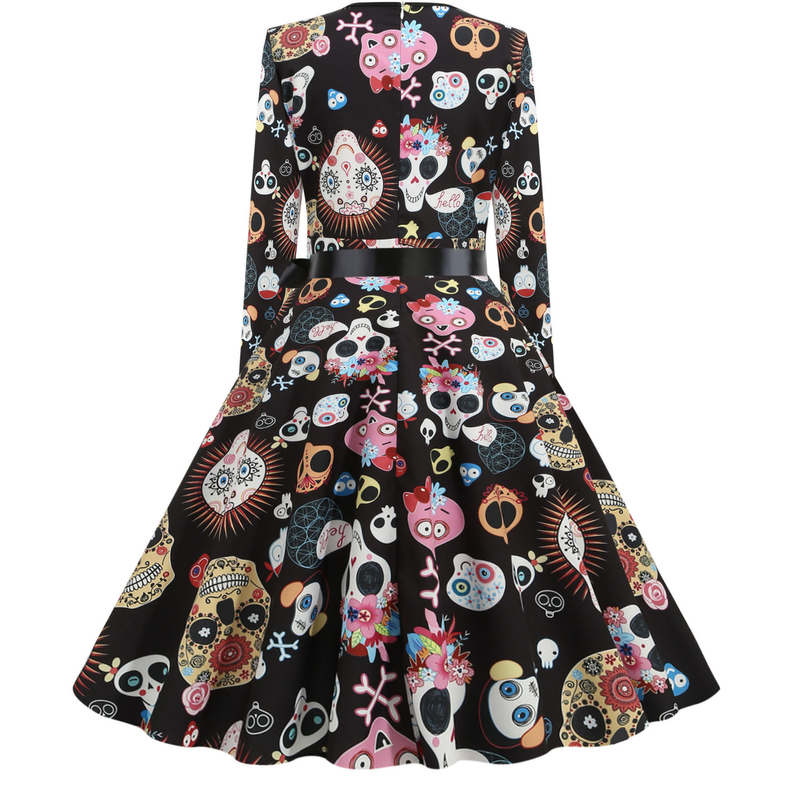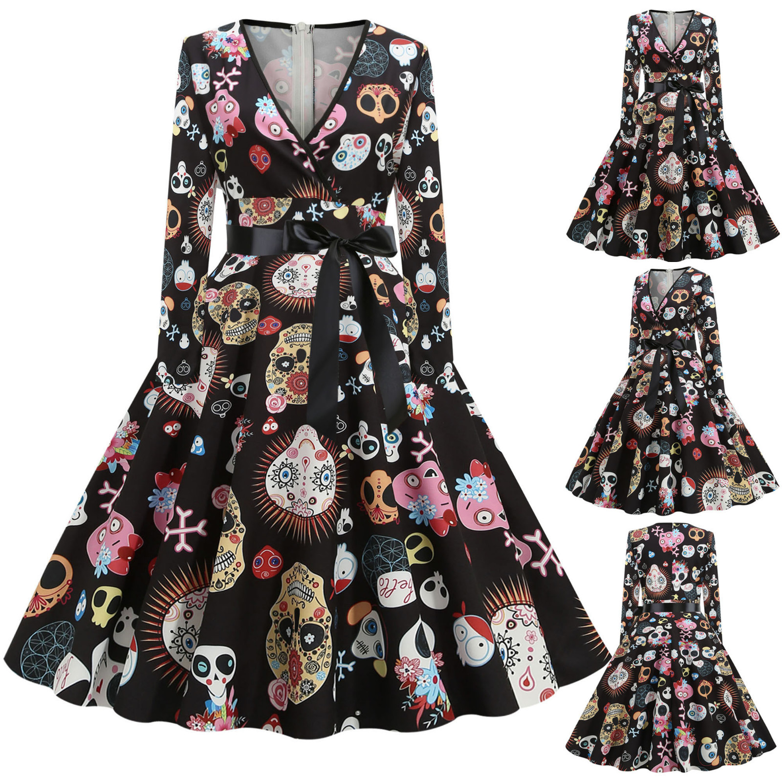 Для женщин в винтажном стиле, с длинным рукавом Хэллоуин 1950s домохозяйки Вечеринка платье для выпускного вечера