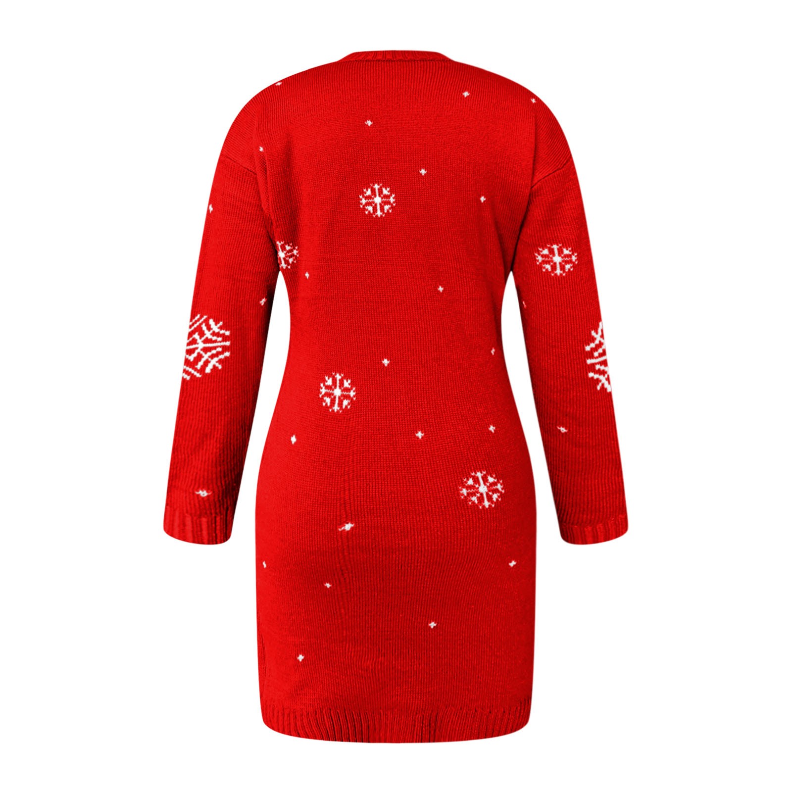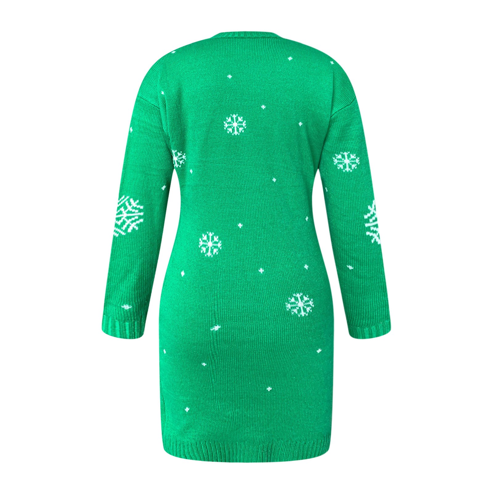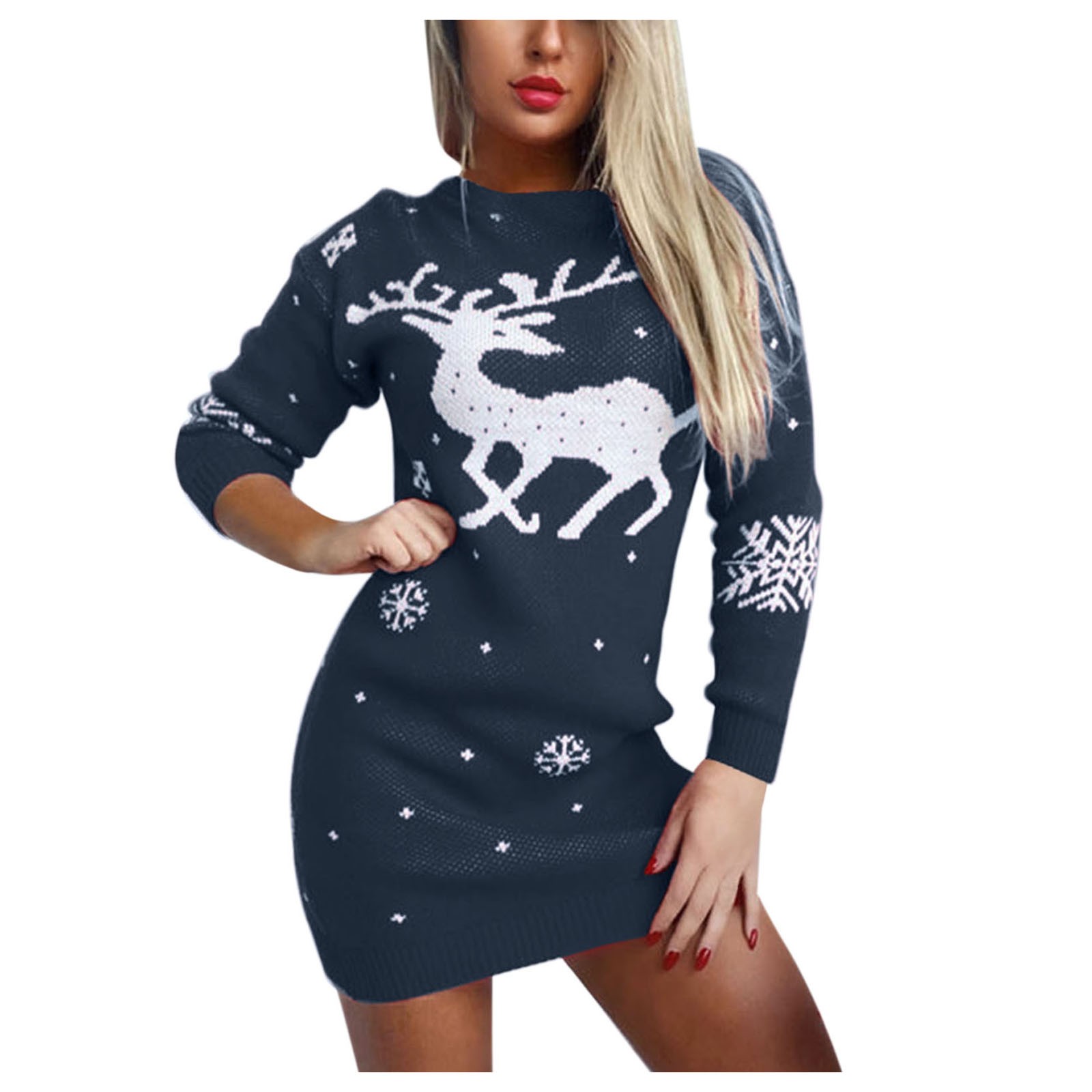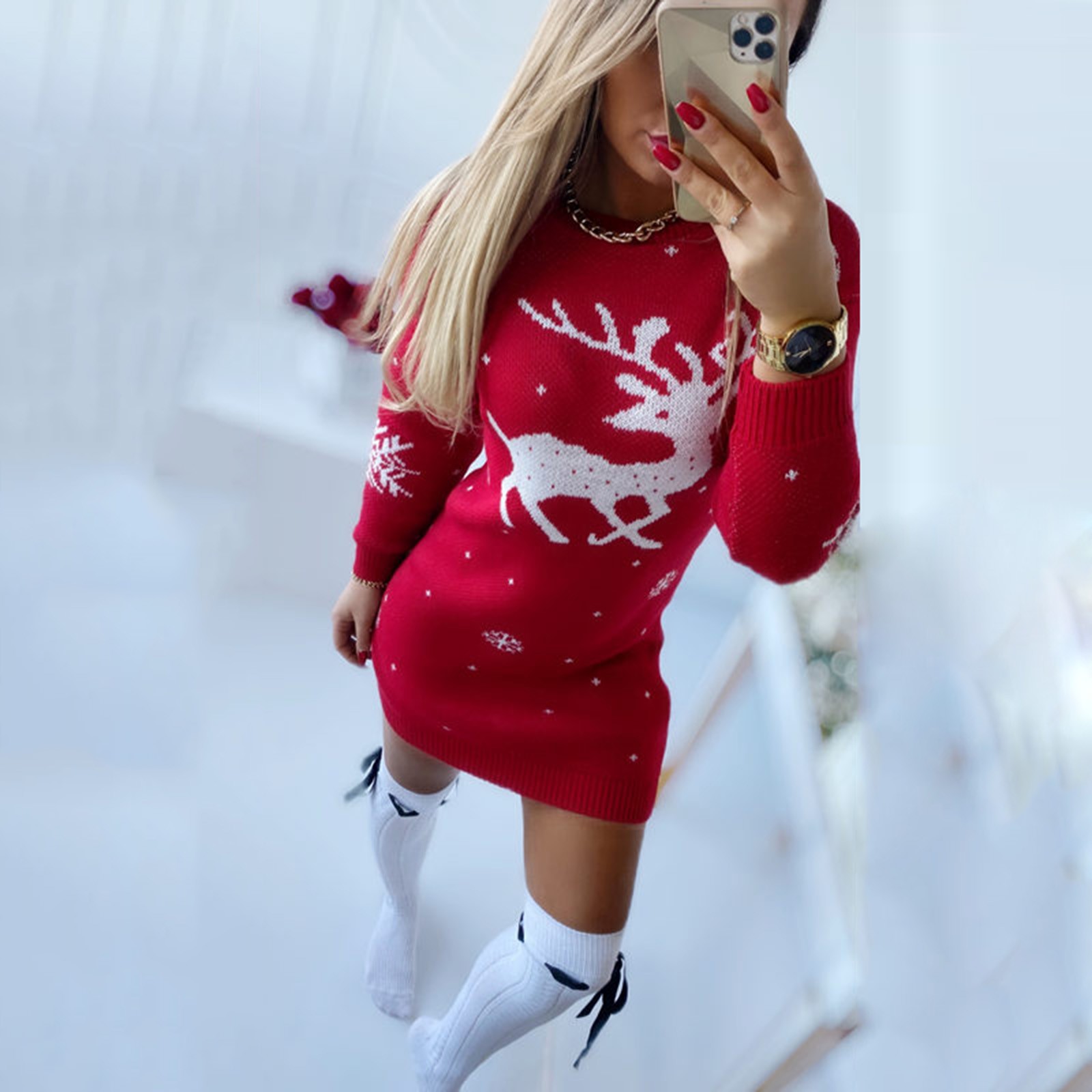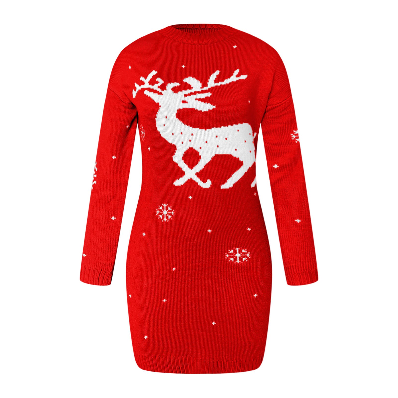 Женский Рождественский пуловер с круглым вырезом и изображением оленя снежинки, трикотажное мини-платье