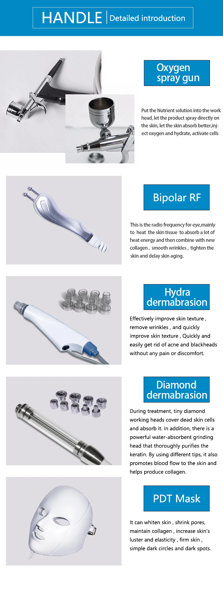 Ручки | Гидра дермабразия ручка/Алмазная дермабразия ручка/ Биполярная RF ручка/кислородный распылитель тумана/PDT маска |