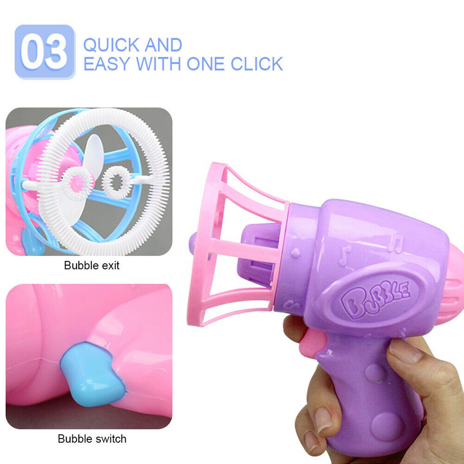 Brand NameISHOWTIENDAOriginMainland ChinaTypeBubble GunMaterialPlasticGenderUnisexShapeLongFeaturesNon ToxicFeaturesNo SpillFeaturesFlashingFeaturesSoundingRecommend Age25-36mRecommend Age4-6yRecommend Age7-12yRecommend Age12+yRecommend Age18+Plastic TypeABSMeasurement unit100000015Each pack1