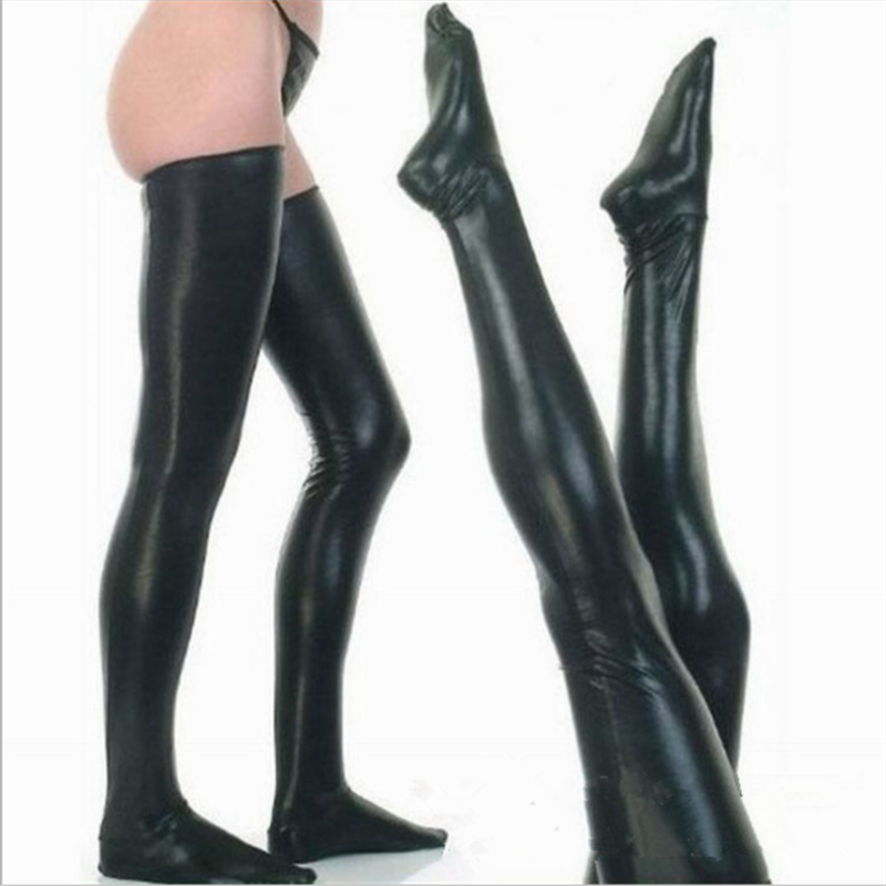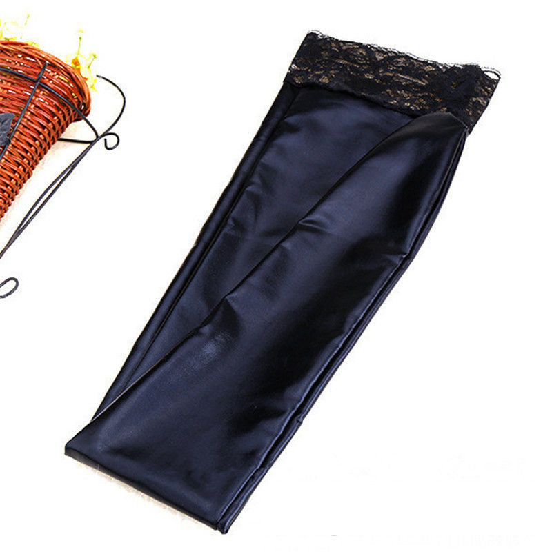 Женские сексуальные носки, однотонные носки из искусственной кожи, кружевные верхние чулки выше колена, дикие Модные носки до бедер