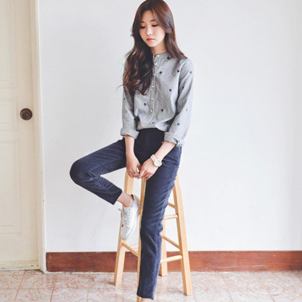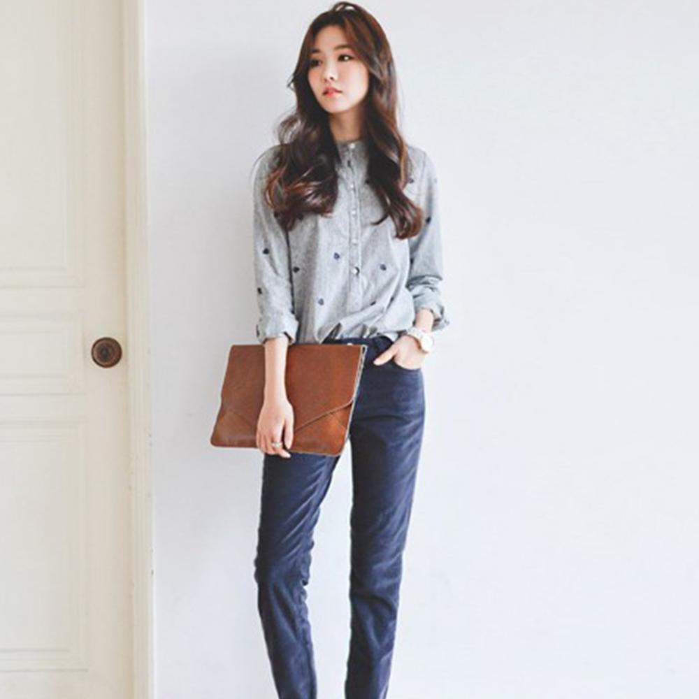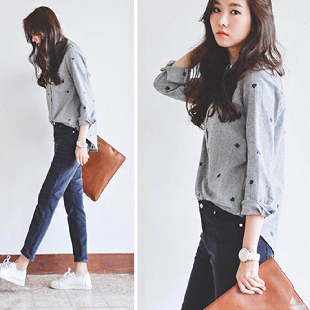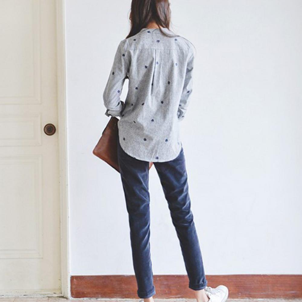 Полосатая блузка с вышитыми листьями, универсальная с джинсами или слаксами.