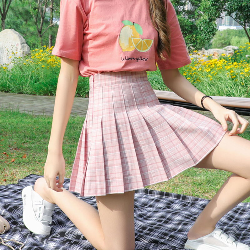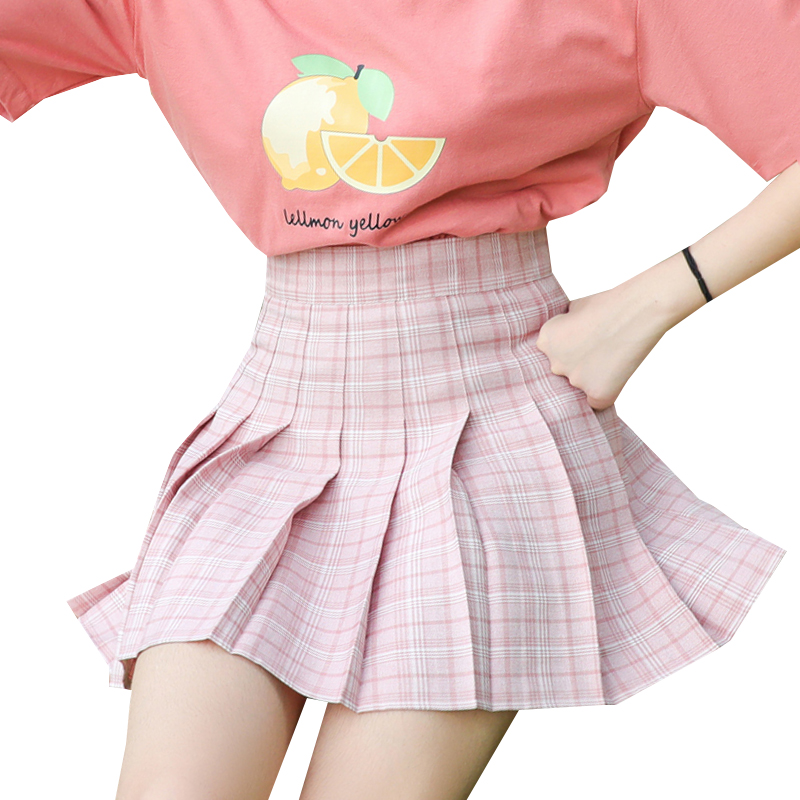 Модная женская плиссированная юбка с высокой талией, Женская клетчатая мини-юбка в консервативном стиле, женская короткая юбка для девочек, розовая трапециевидная Женская юбка
