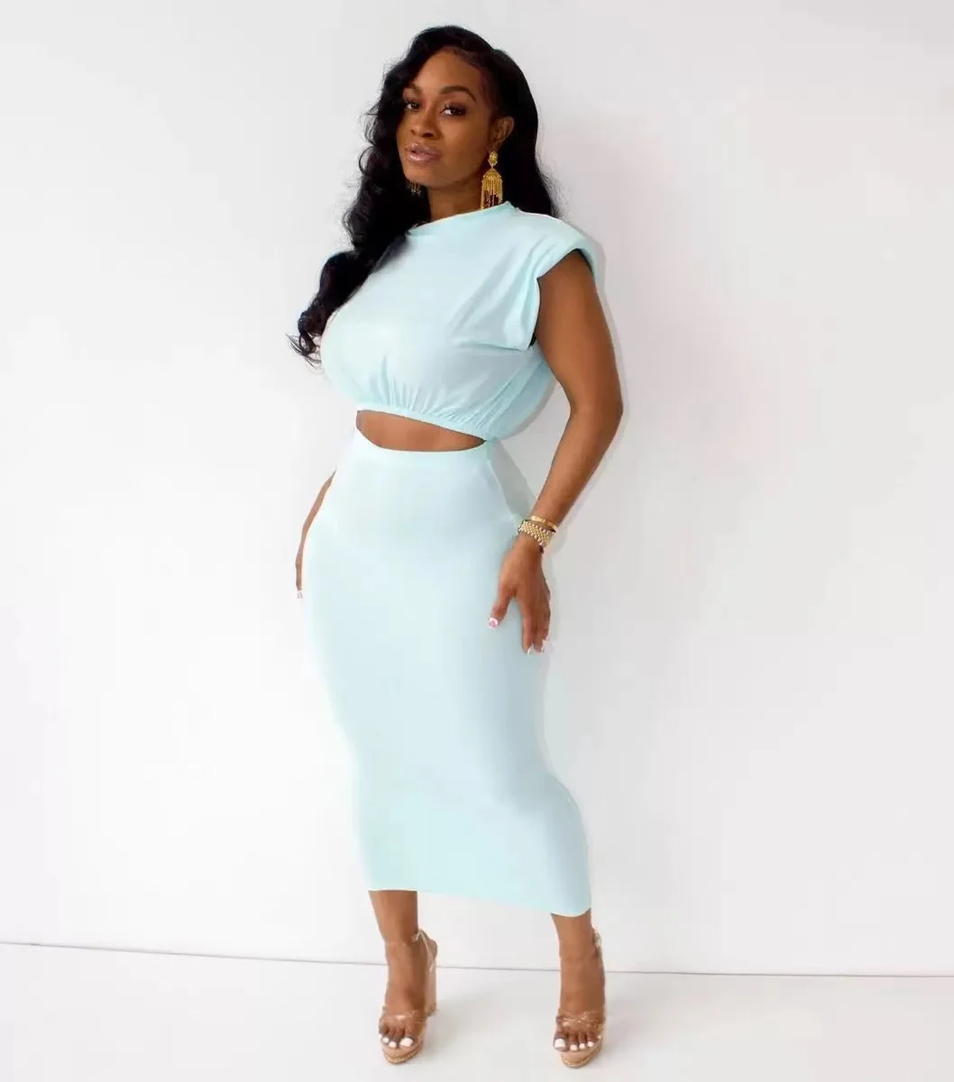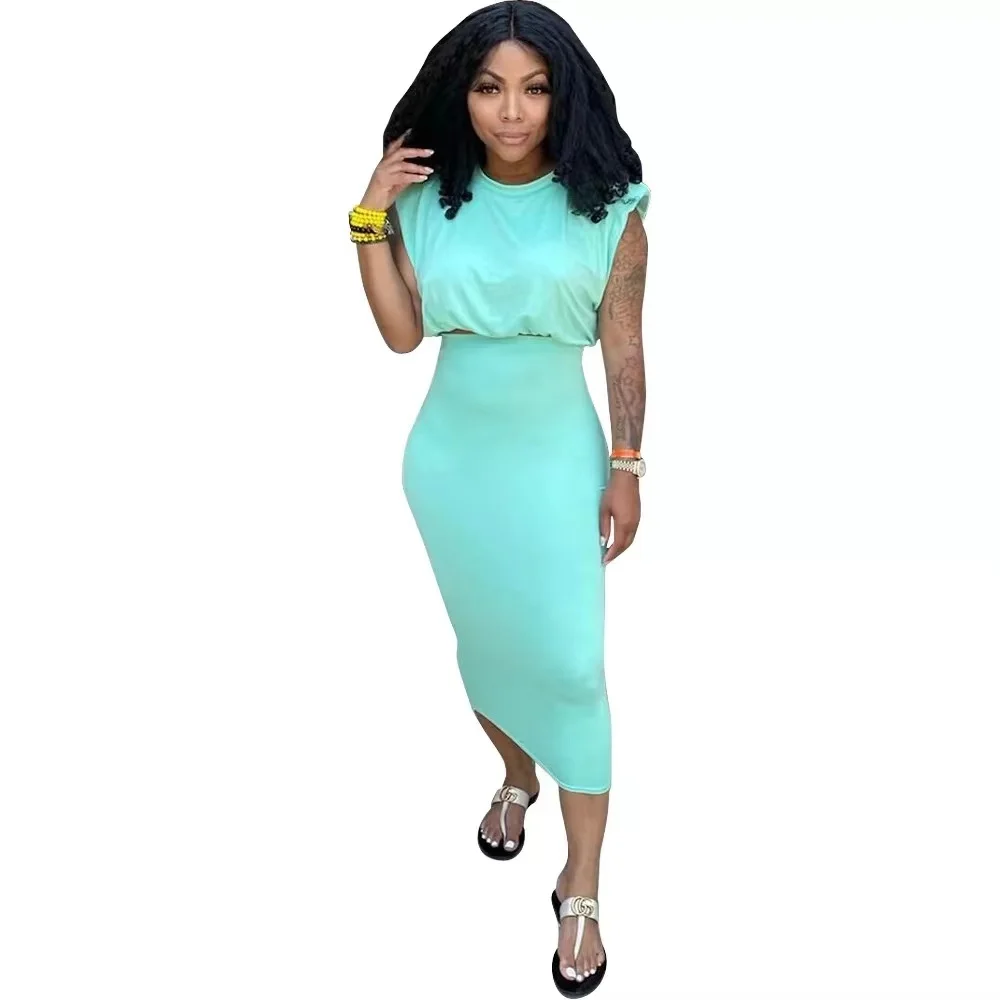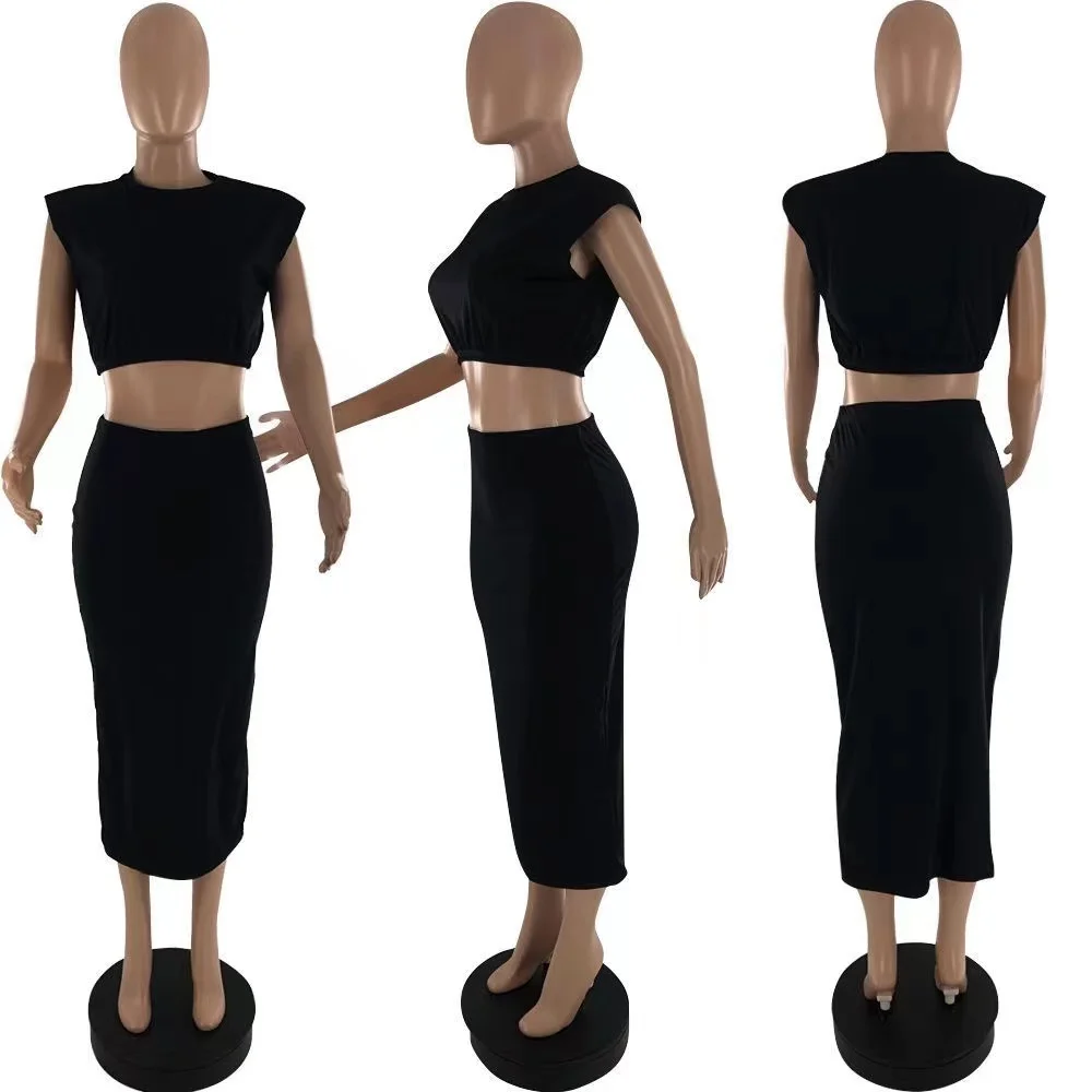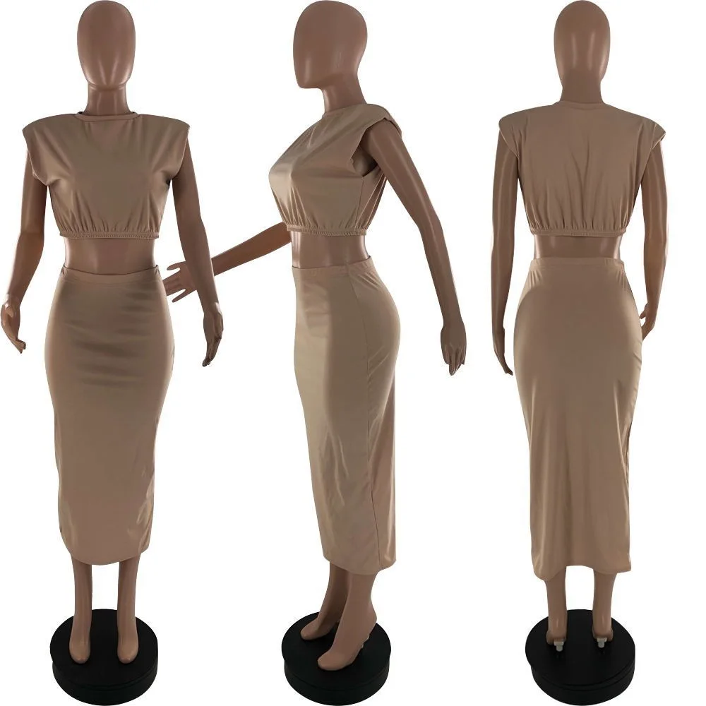 Женский однотонный Тощий укороченный топ без рукавов, макси юбка, наборы, Женская облегающая юбка-футляр на плечо