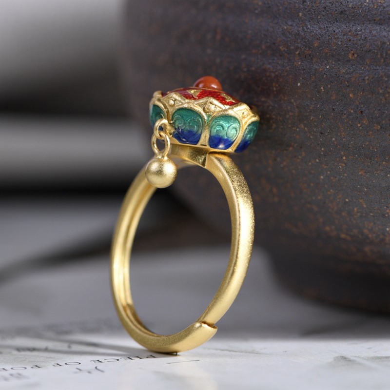 Буддизм Лотос Цветочная эмаль вращающееся коктейльное кольцо тибетско-буддистские молитвенные кольца на колесиках OM мантра кольцо на палец удачи