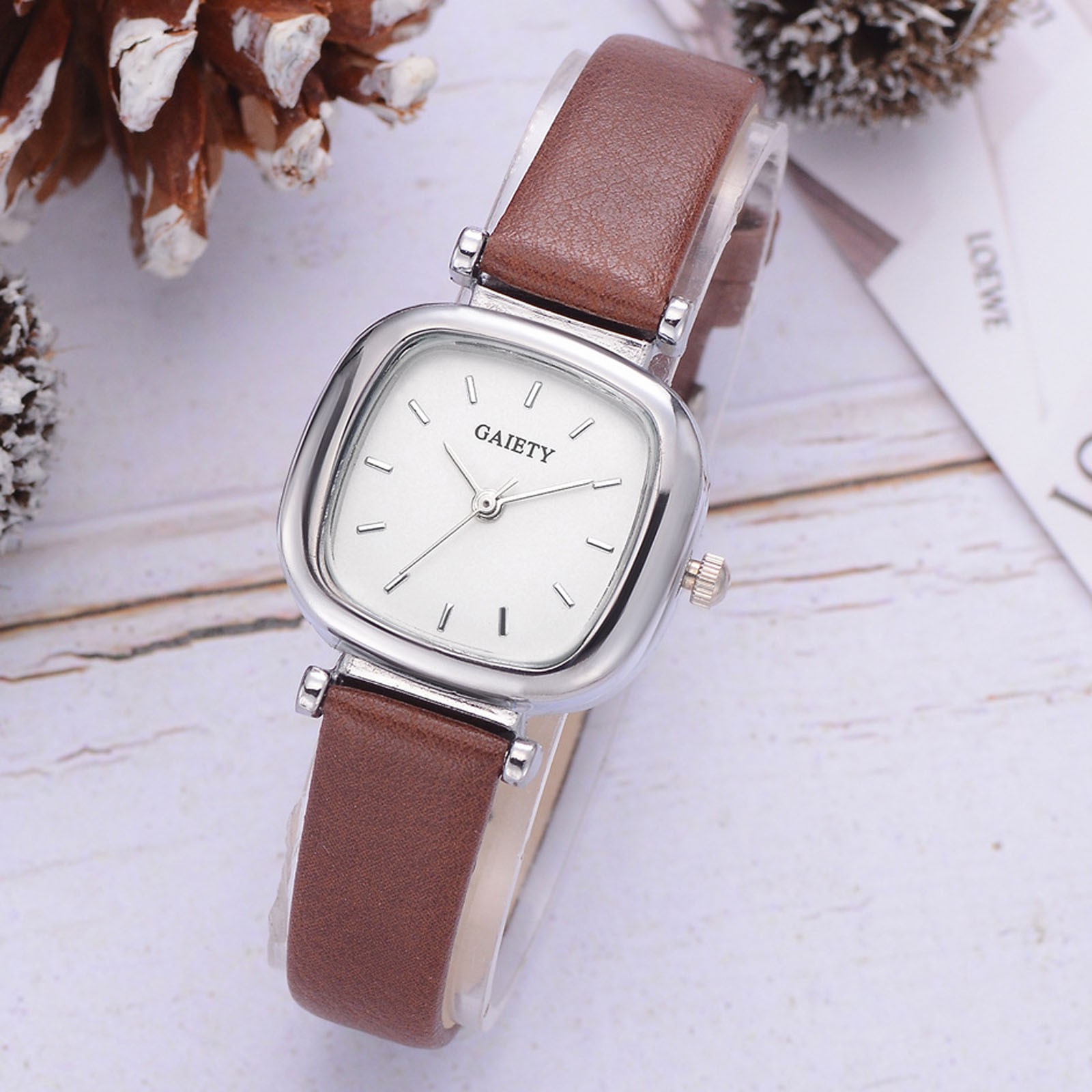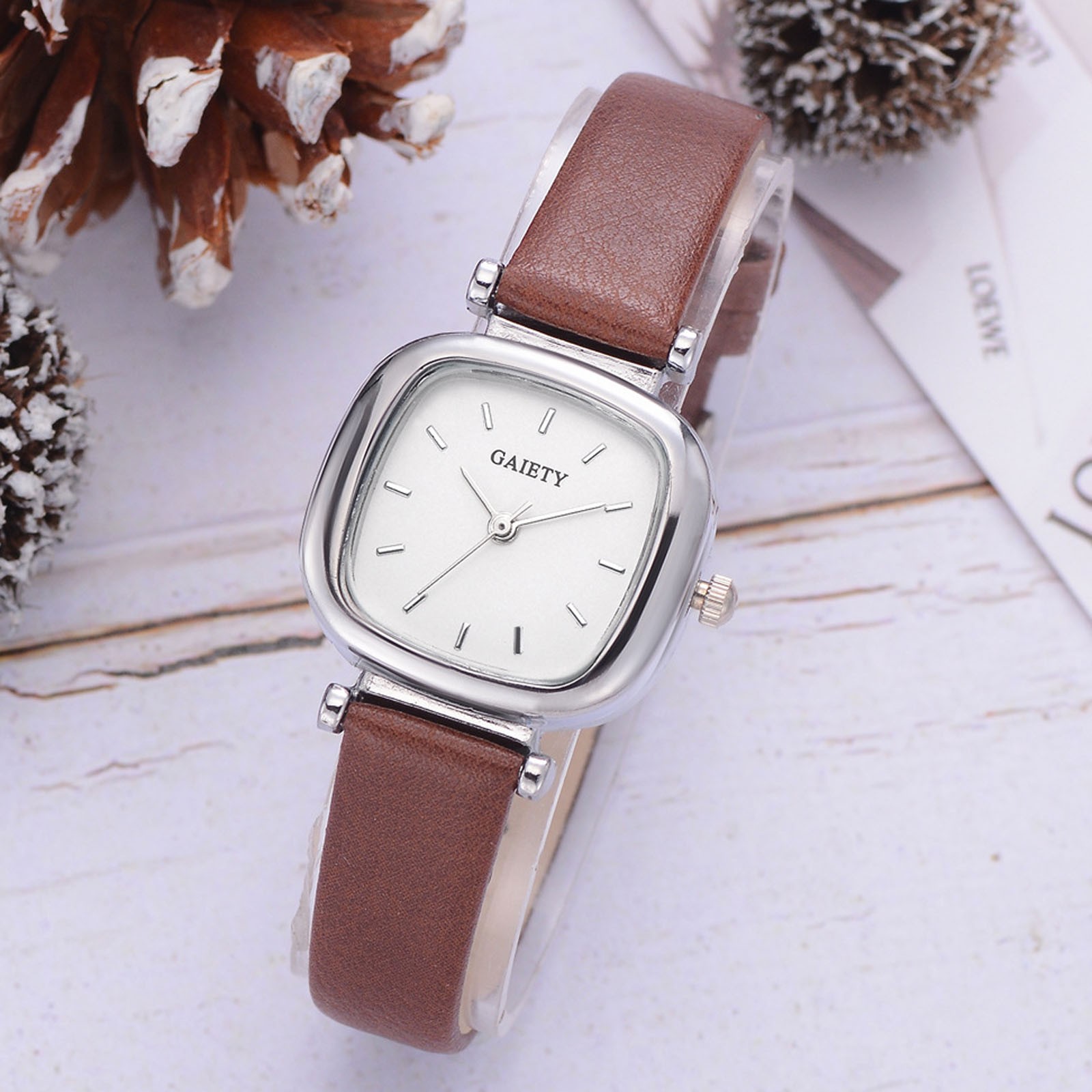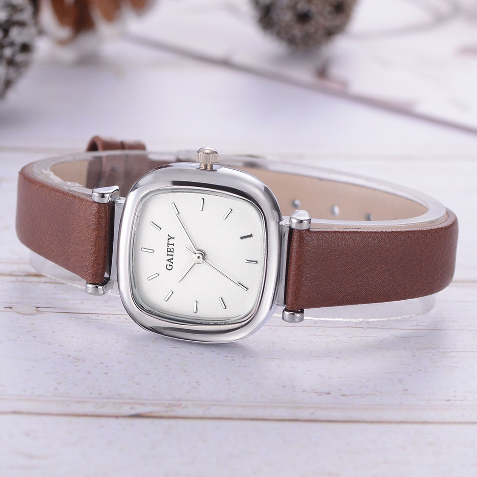 Женские Модные круглые часы с кожаным ремешком и имитацией кварца