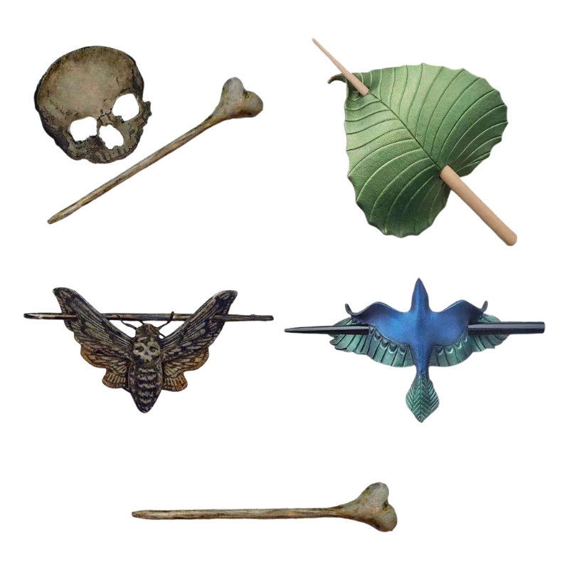 Креативные палочки для волос имеют множество стилей, включая моль смерти, Череп, лист, птицу и искусственную кость.