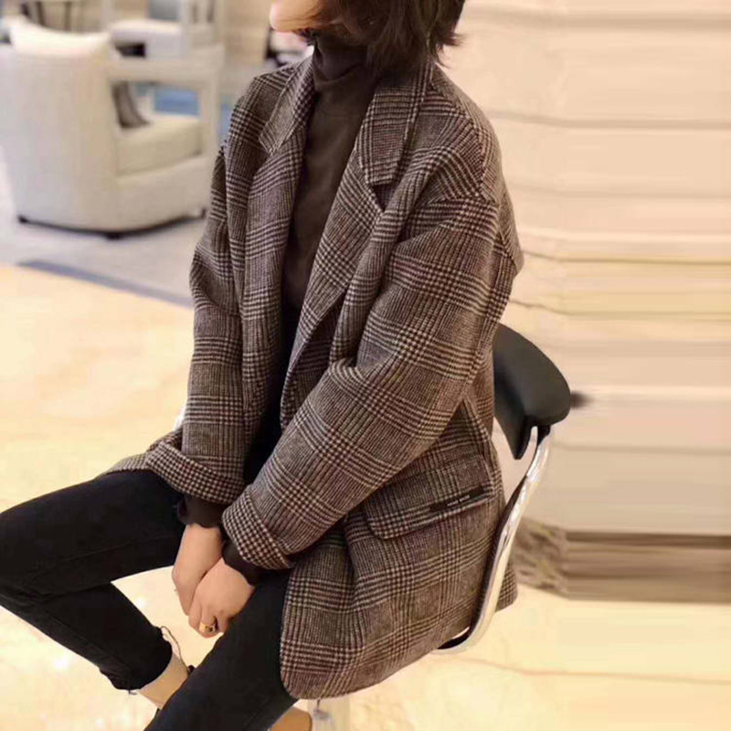 Женское длинное шерстяное пальто коричневое повседневное Свободное большого