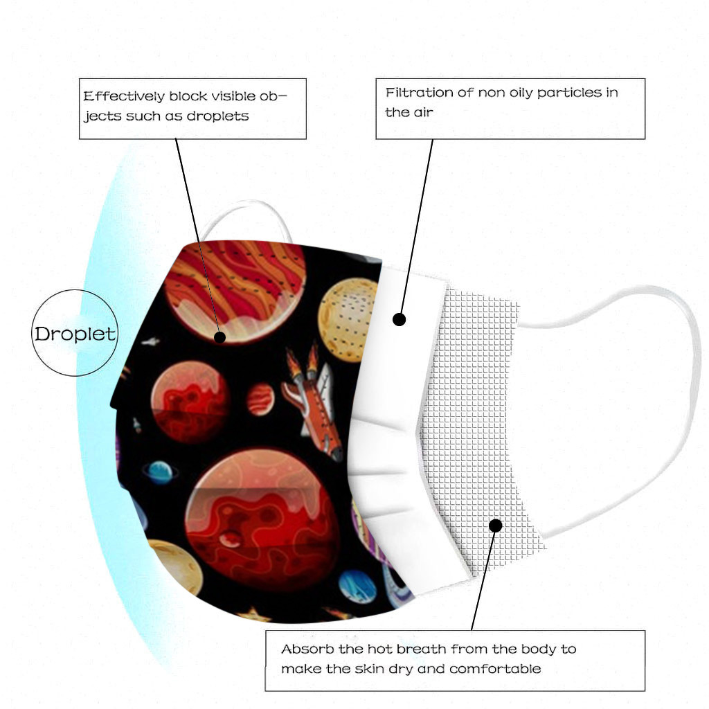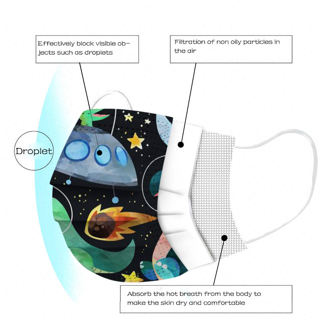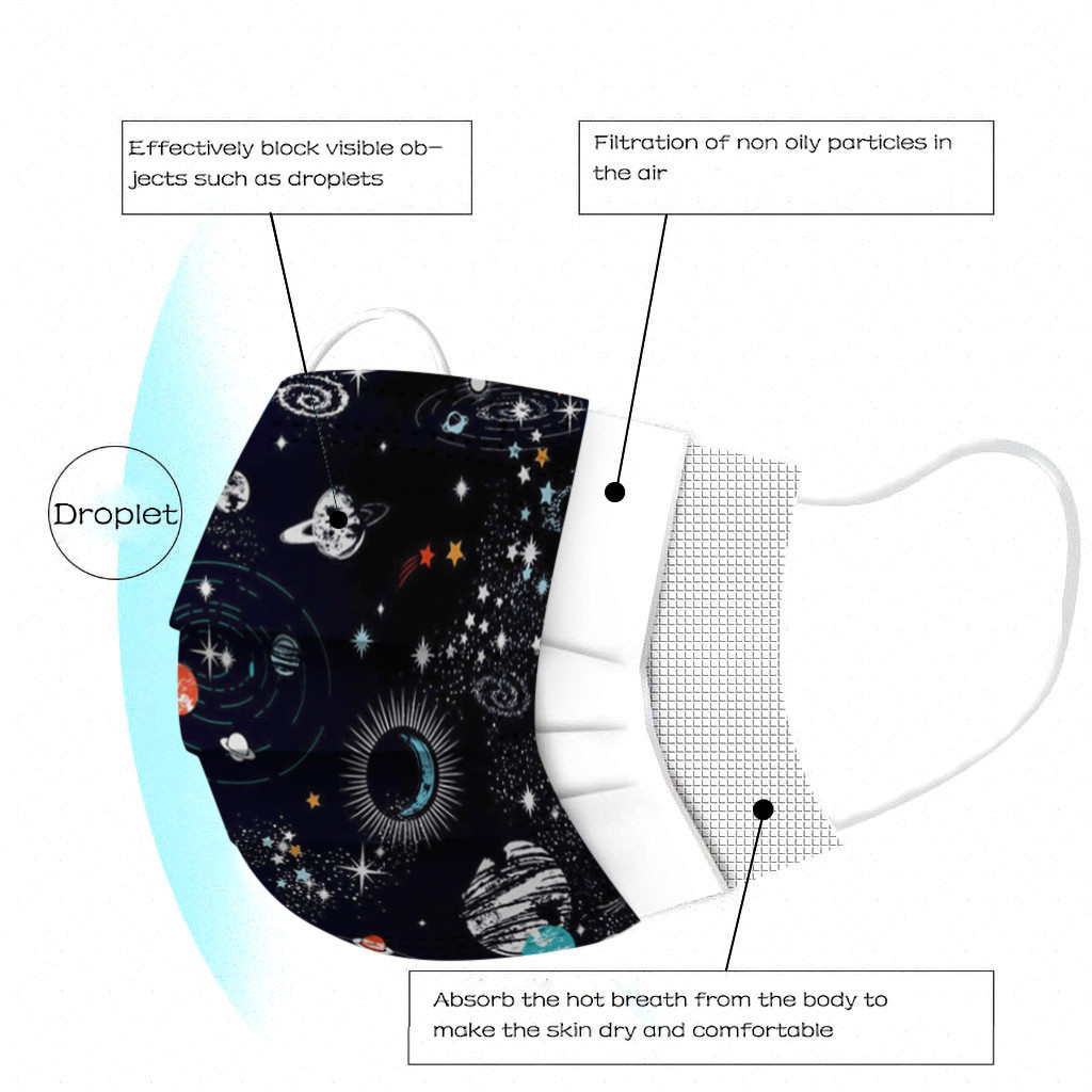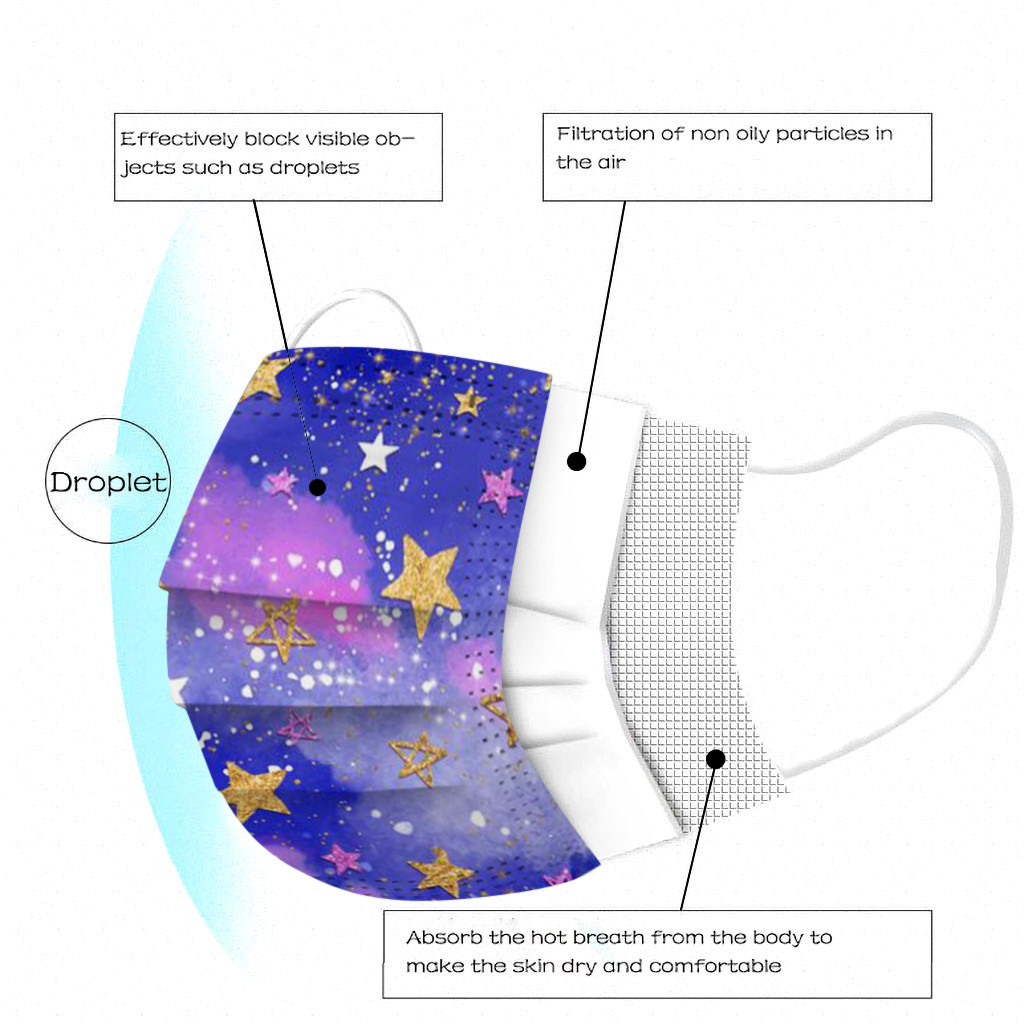The 3 ply non-woven disposable mask is made of 3 ply non-woven material, it is healthy and safe for you to use. Breathable material and cute patterns, which makes it useful and fashionable. Special 3 ply non-woven design, provides some protections against dust, automobile exhaust, pollen, etc. Elastic ear loop, easy to wear and no pressure to the ears. nail salon or any other areas where protection might be required