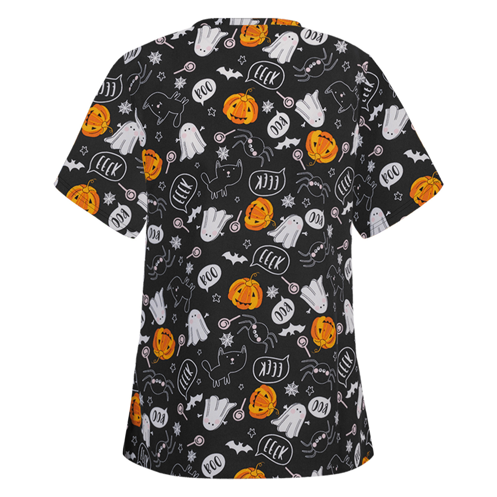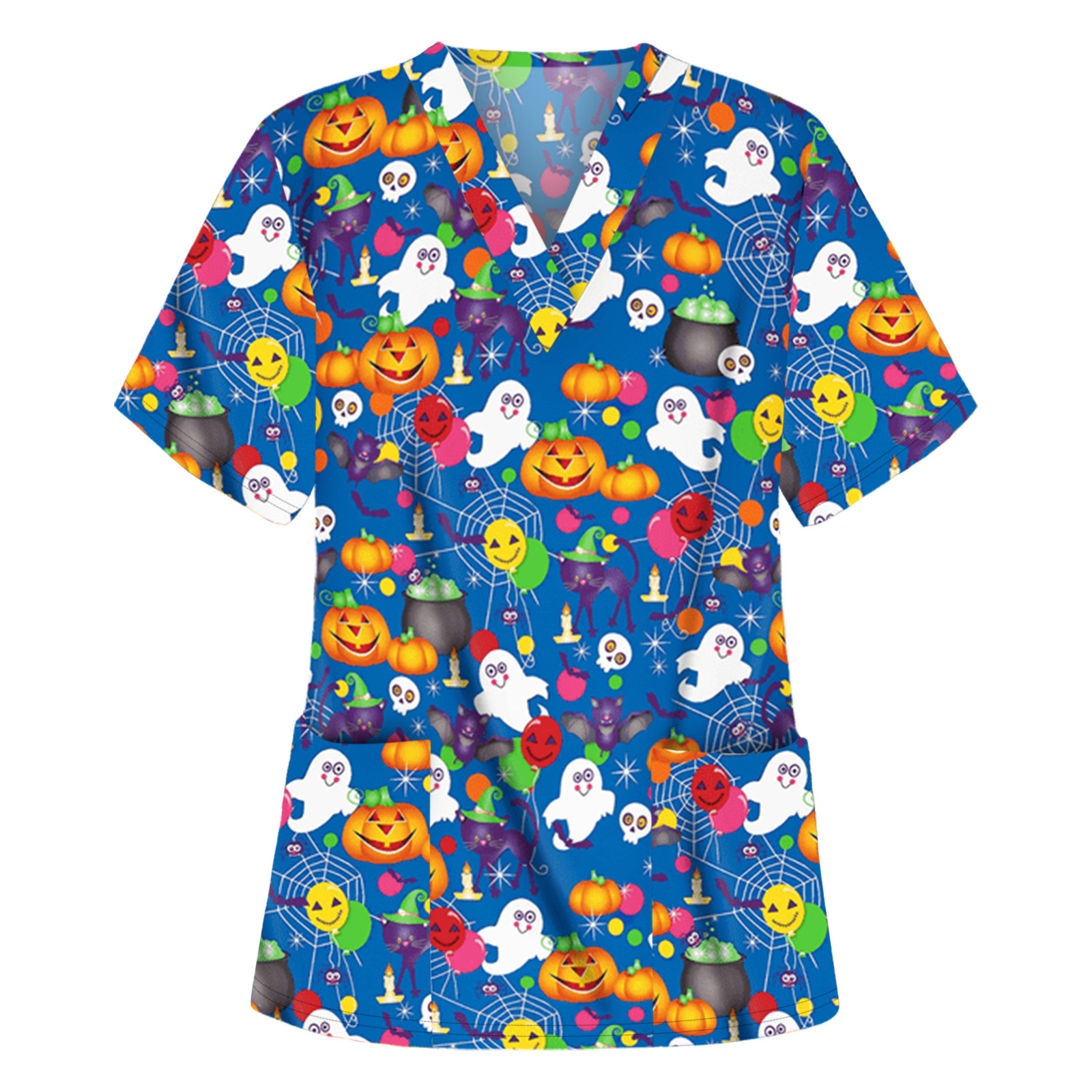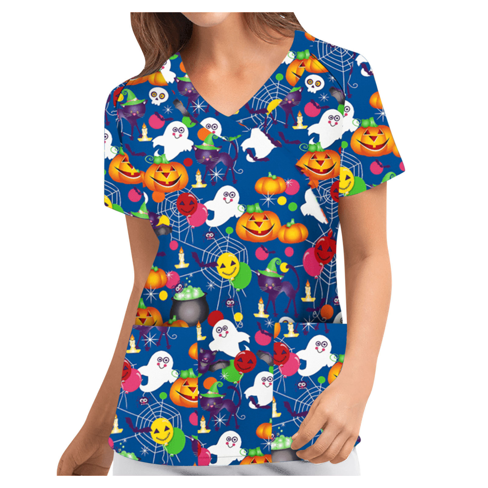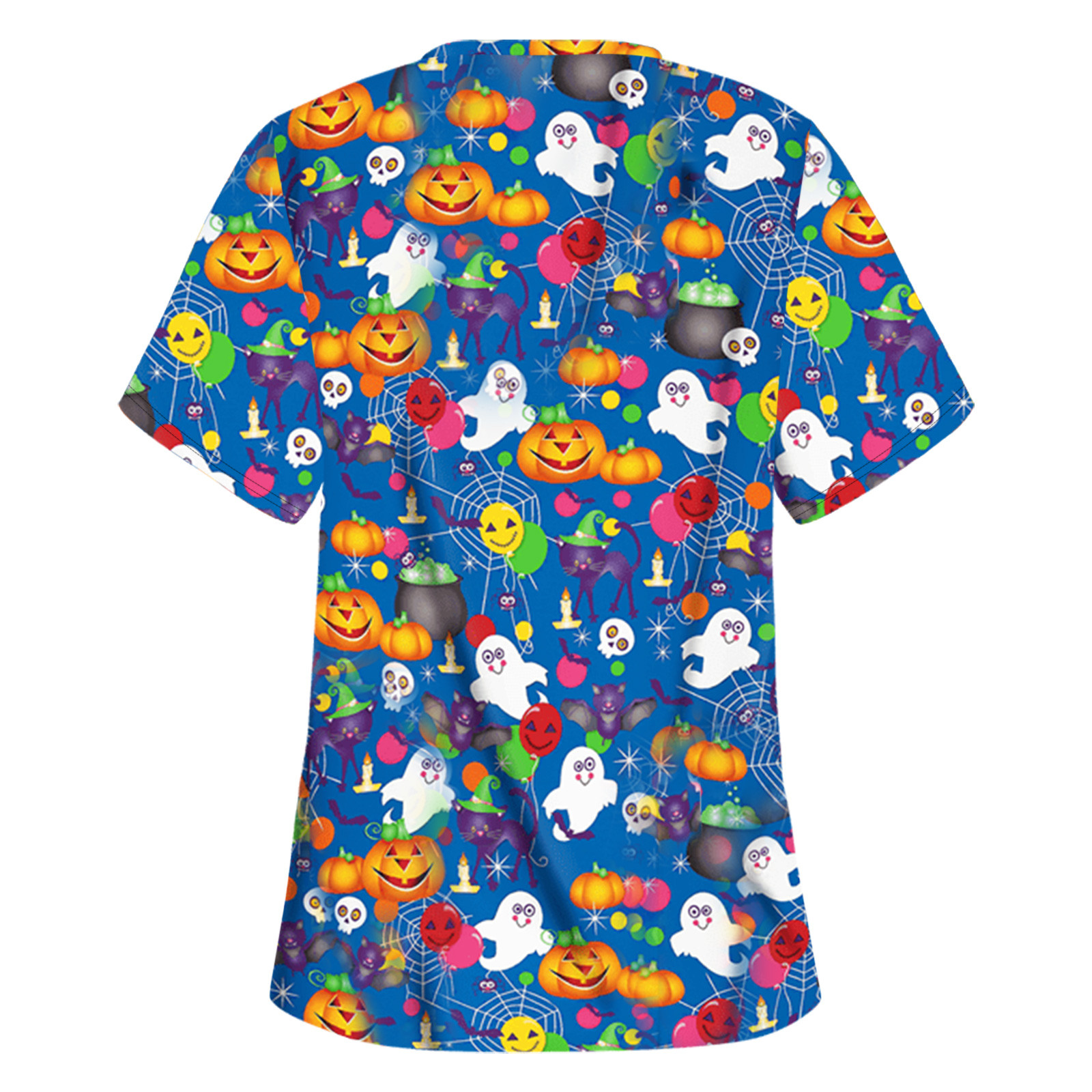 Особенности изделия: Пол: Для женщин повод: повседневный, рабочий Цвет: v-образный вырез Тип узора: принт с героями мультфильмов на Хэллоуин Упаковка включает в себя: 1 шт. женская блузка Топ Примечание: Пожалуйста, сравните детали размеров s с вашими перед покупкой! Таблица размеров: