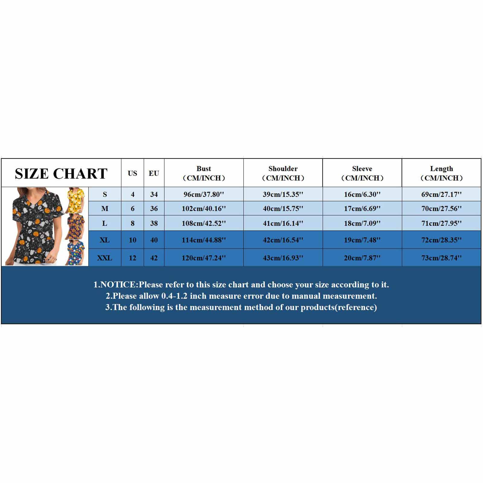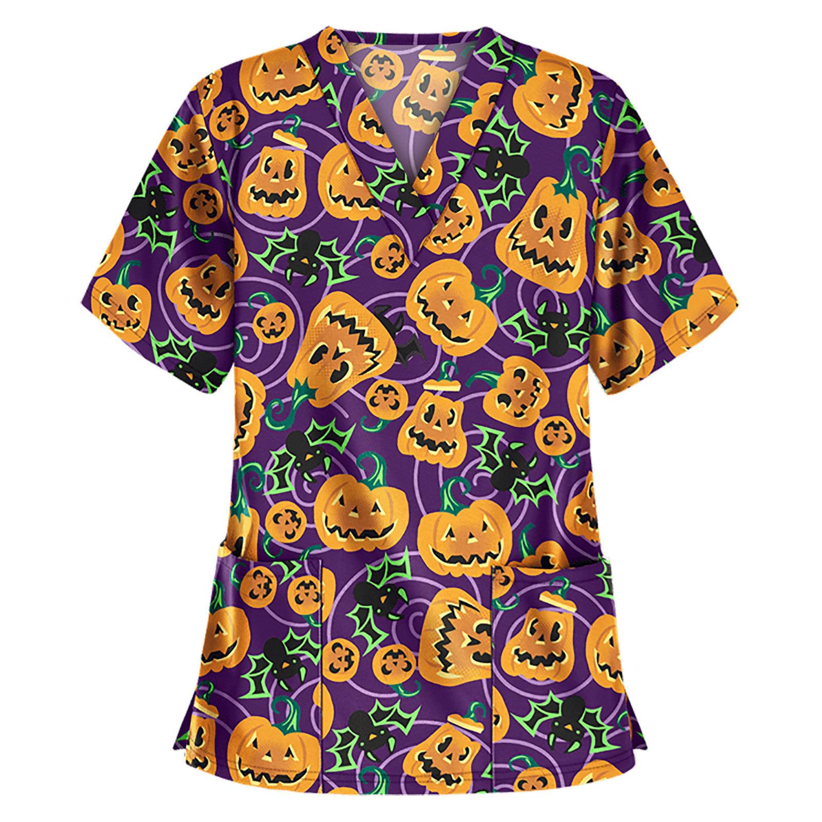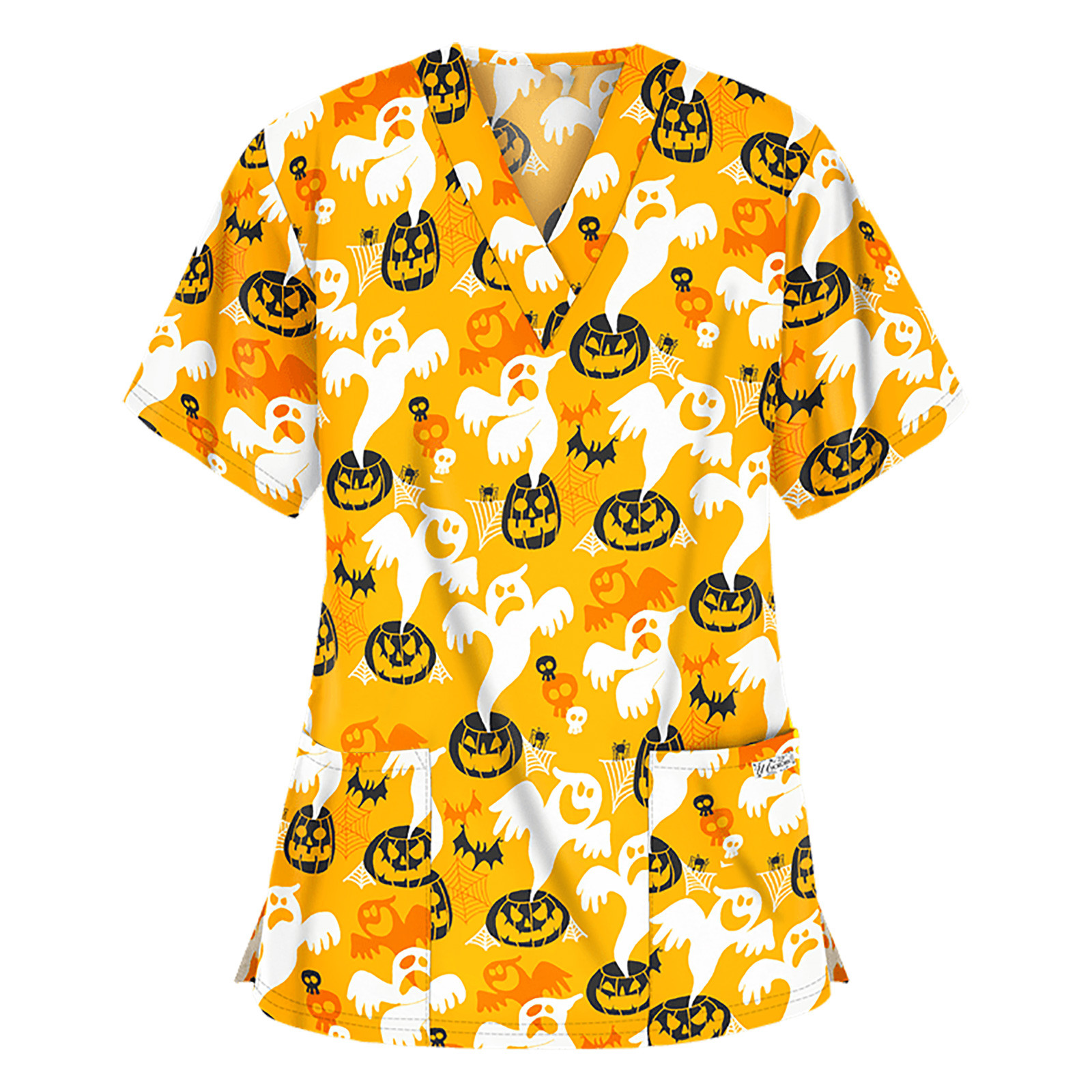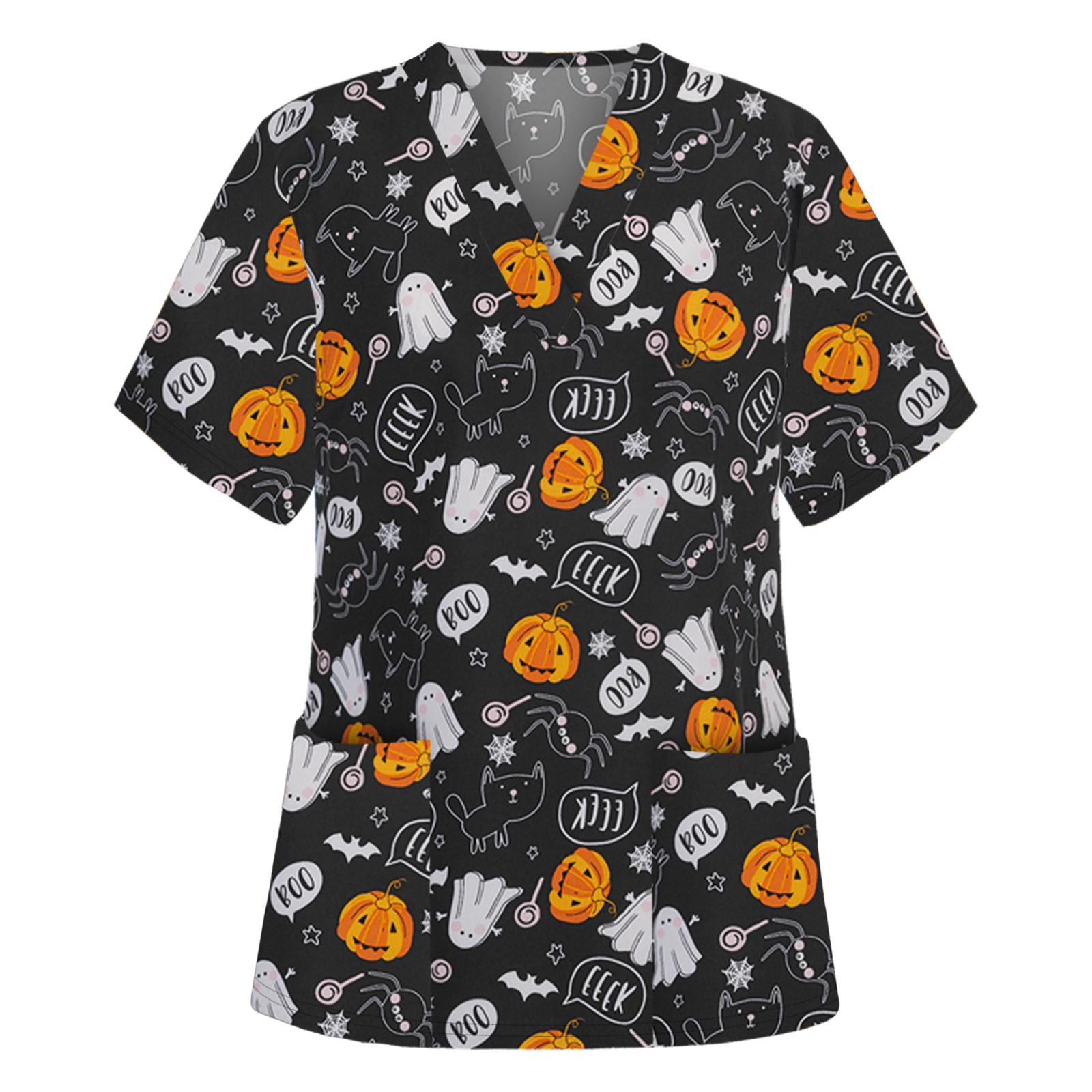 Особенности изделия: Пол: Для женщин повод: повседневный, рабочий Цвет: v-образный вырез Тип узора: принт с героями мультфильмов на Хэллоуин Упаковка включает в себя: 1 шт. женская блузка Топ Примечание: Пожалуйста, сравните детали размеров s с вашими перед покупкой! Таблица размеров: