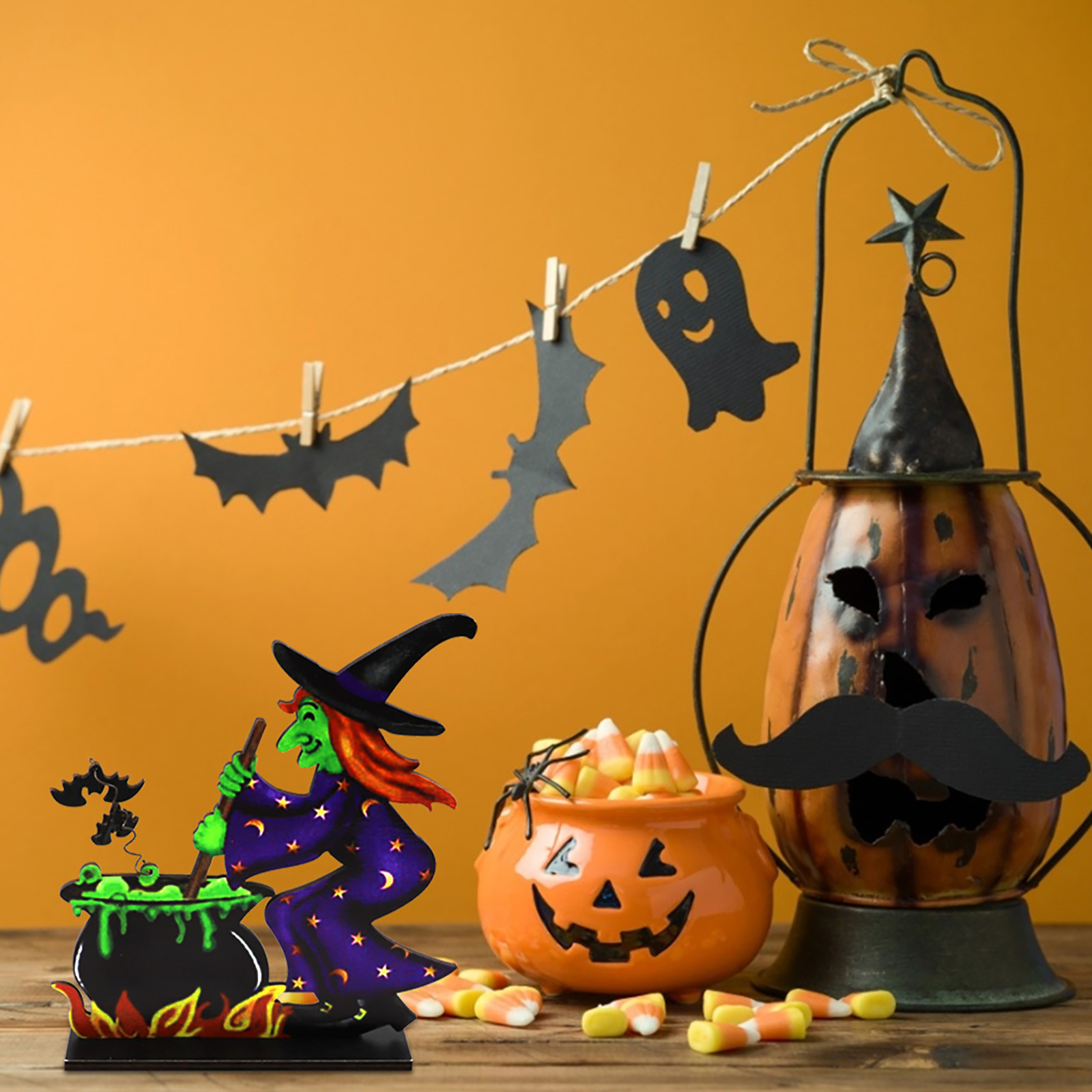 - Деликатный дизайн: Наш деревянный декор в виде тыквенного стола разработан в тематике Хэллоуина, который украшает классические элементы Хэллоуина, такие как шляпа ведьмы, черная шляпа, тыква, призрак и так далее, что делает его лучше подходит для украшения Хэллоуина