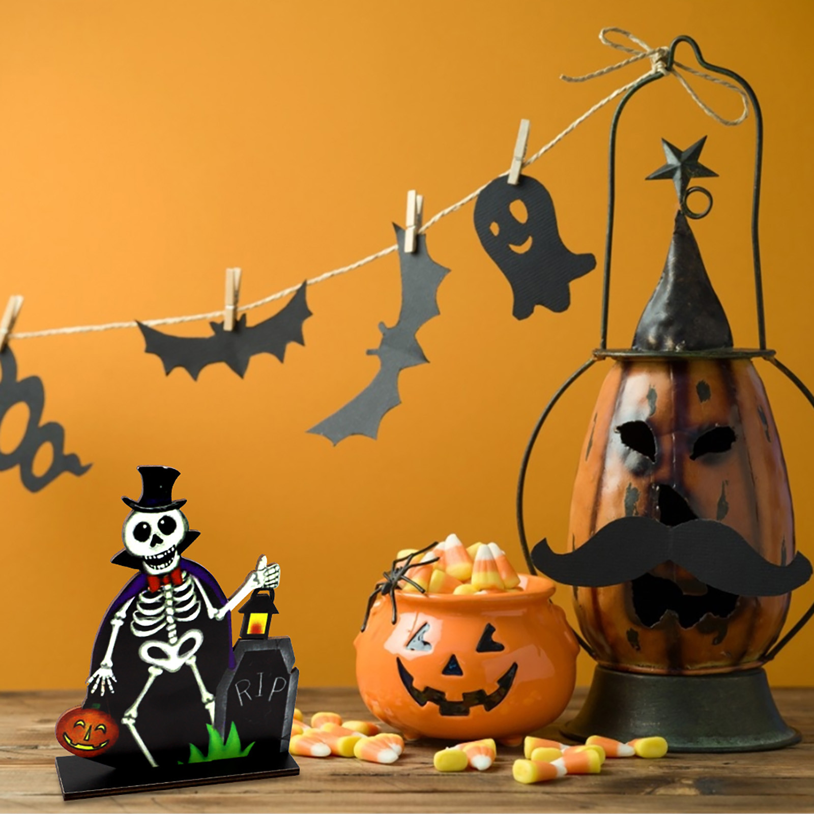 - Привлекательное деревянное украшение скелета: Наши вечерние столешницы для Хэллоуина долговечны и стильны; Это обязательно привлечет внимание ваших гостей и согласуется с вашей тематическая вечеринка Хэллоуин Вечерние