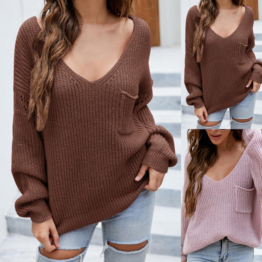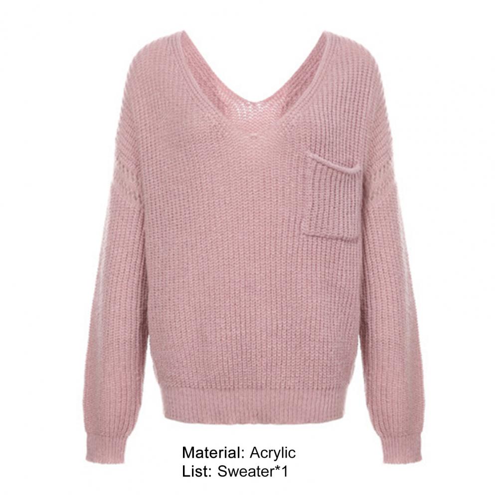 Женский свитер с глубоким v-образным вырезом подчеркнет вашу стройную и сексуальную ключицу. Этот простой свитер с карманом придает ощущение модности.