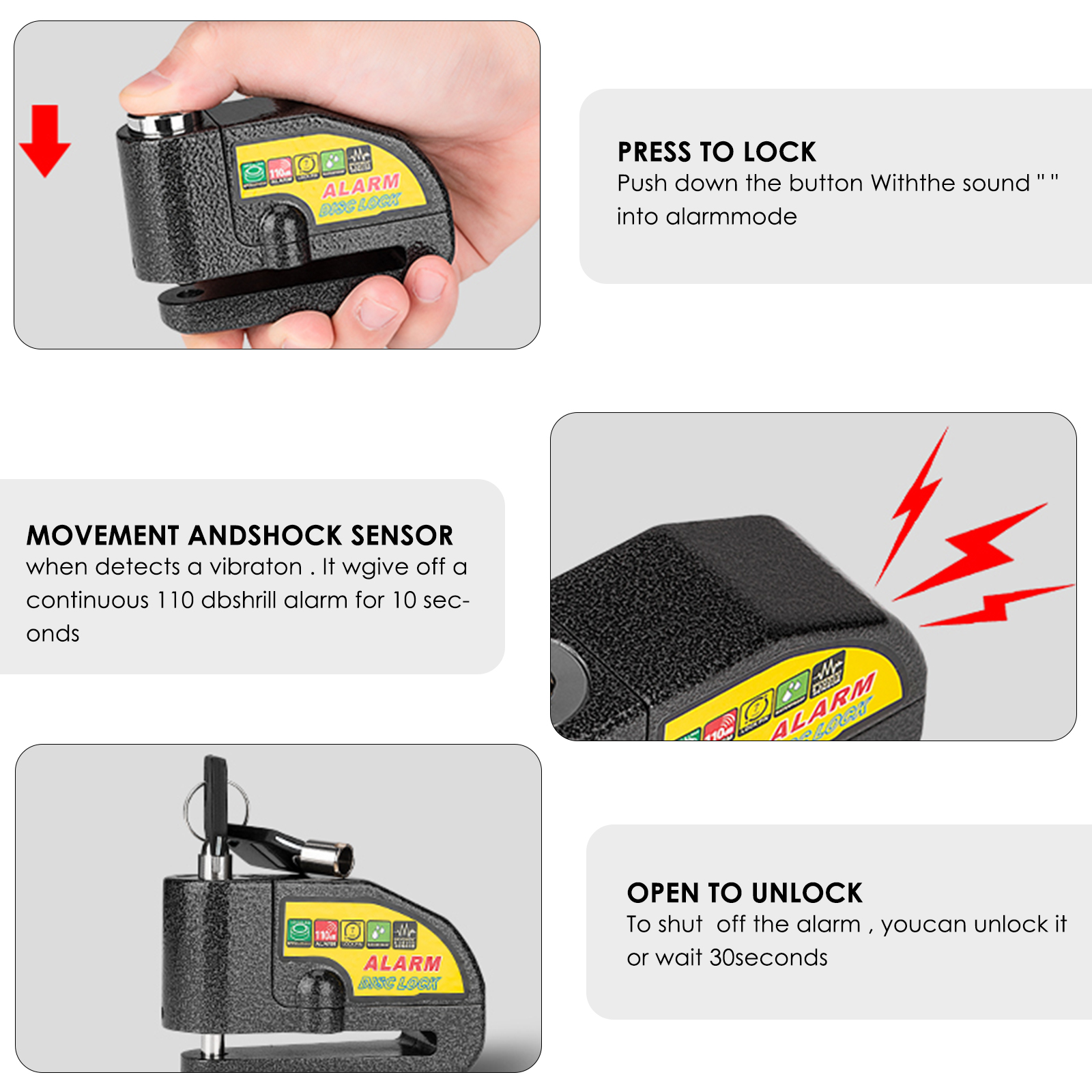 1 шт. водонепроницаемый замок с сигнализацией для мотоцикла 110 дБ, велосипедный замок с защитой от кражи, дисковый тормоз