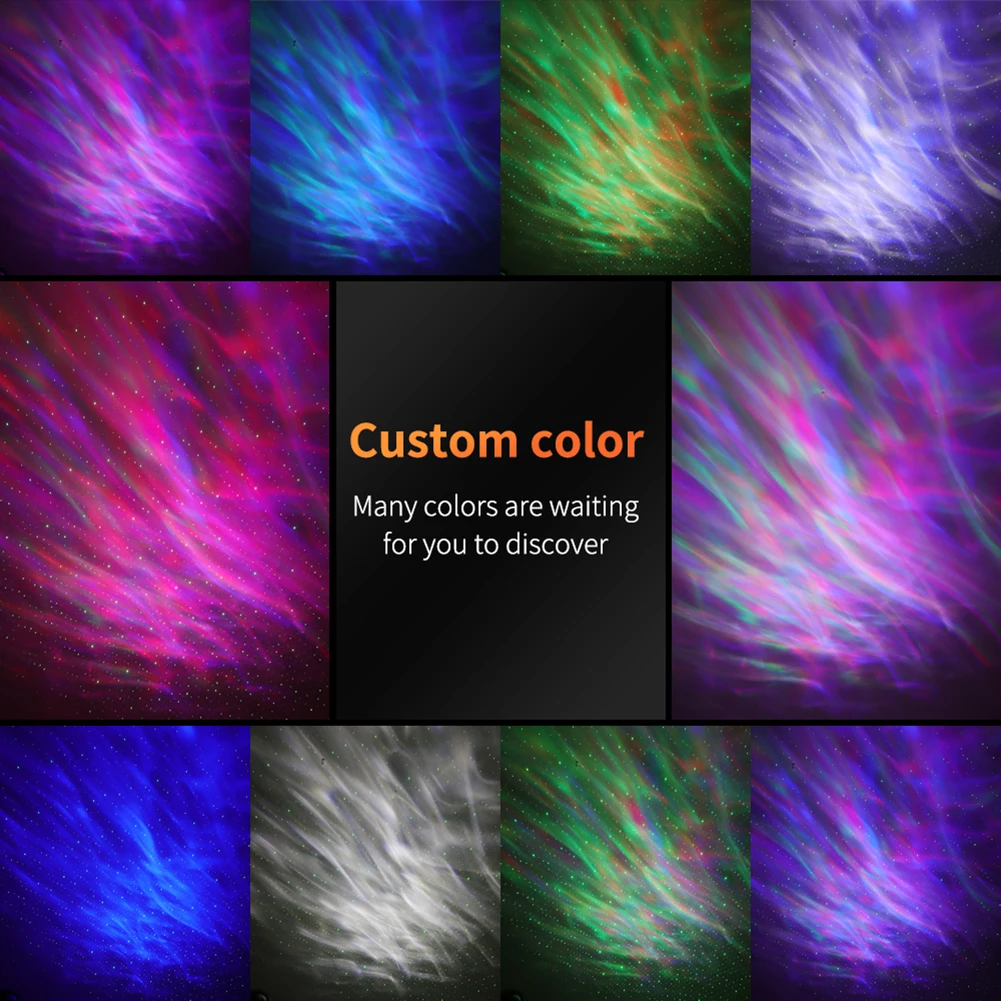 1. Этот продукт представляет собой комбинацию четырех цветов (Аврора водяной знак) лампы и зеленого лазера. Водяной знак aurora имеет четыре цвета: красный, белый, синий и зеленый, а цвет лазера-зеленый;