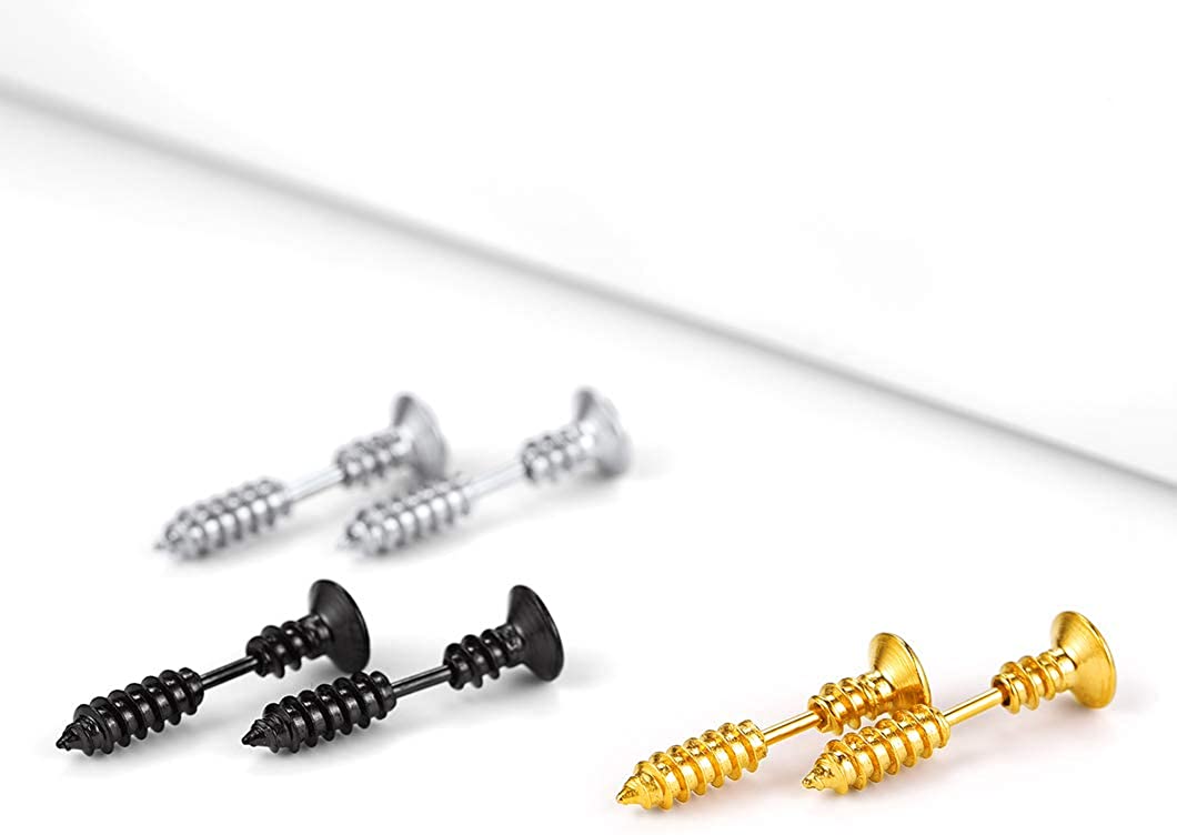 3 пары винтовых сережек для мужчин и женщин, серьги с винтовой застежкой в стиле панк. Отлично сочетается с любым стилем для любого случая.