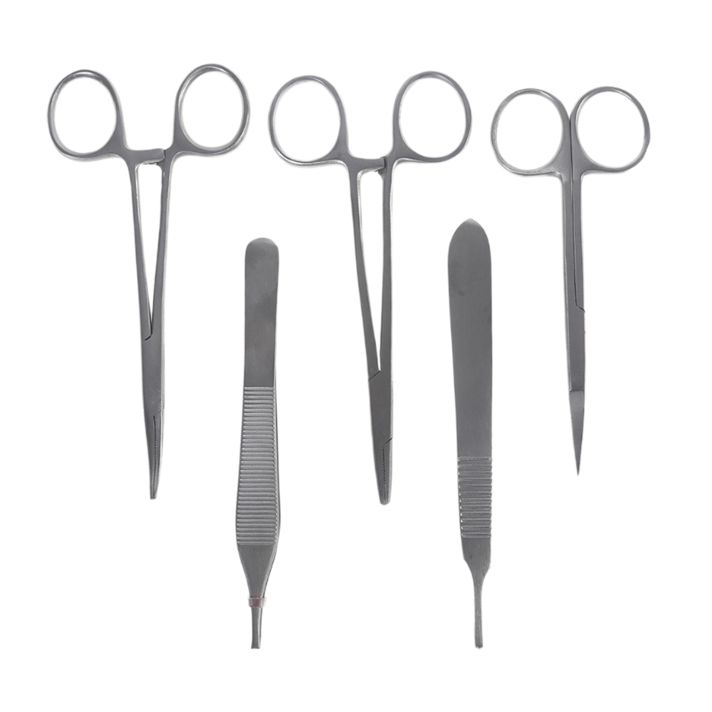 62 КБ 5 шт набор для практики наложения швов 1 x Скальпель с ручкой 1 x щипцы Adson 1 x щипцы Mosquitos 1 x Драйвер иглы 1 x Ножницы Для радужной оболочки