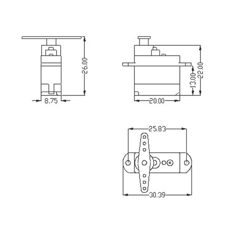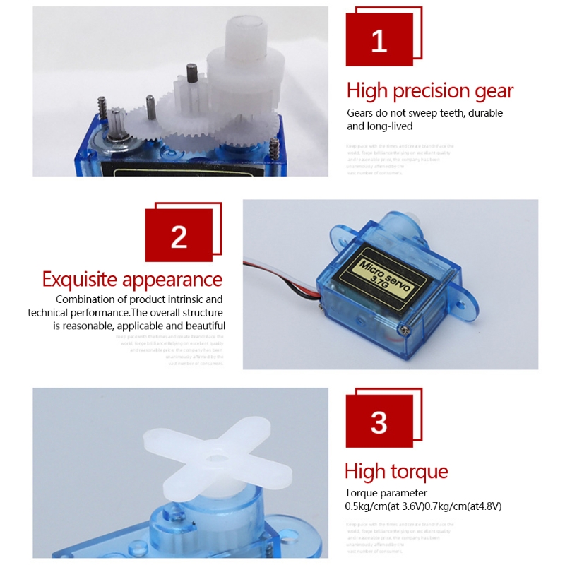 Рабочий крутящий момент: 0,7 кг/см (4,8 V): 0,8 кг/см (6,0 V)