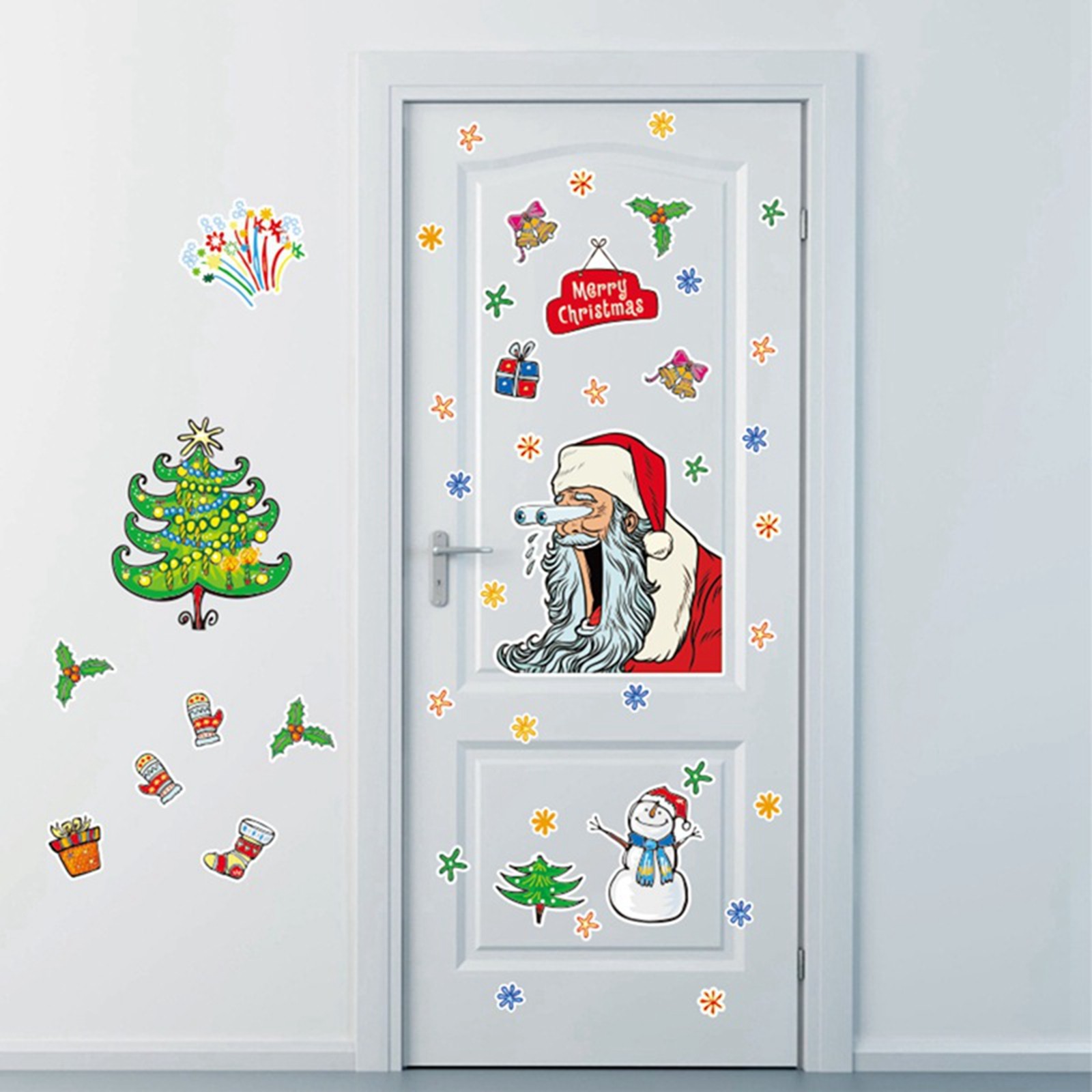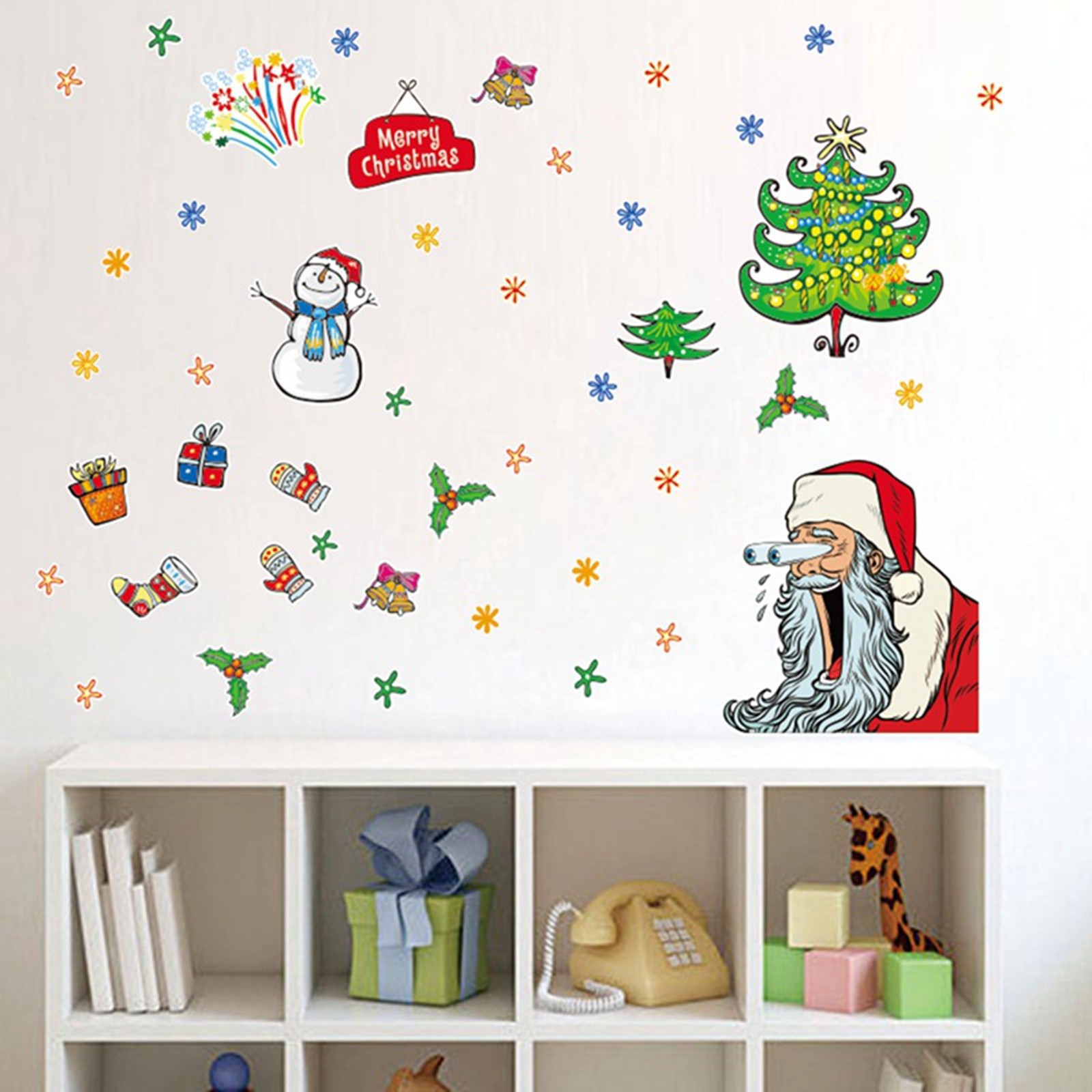 Рождественские наклейки с изображением снеговика, животных, Декорация стены детской комнаты
