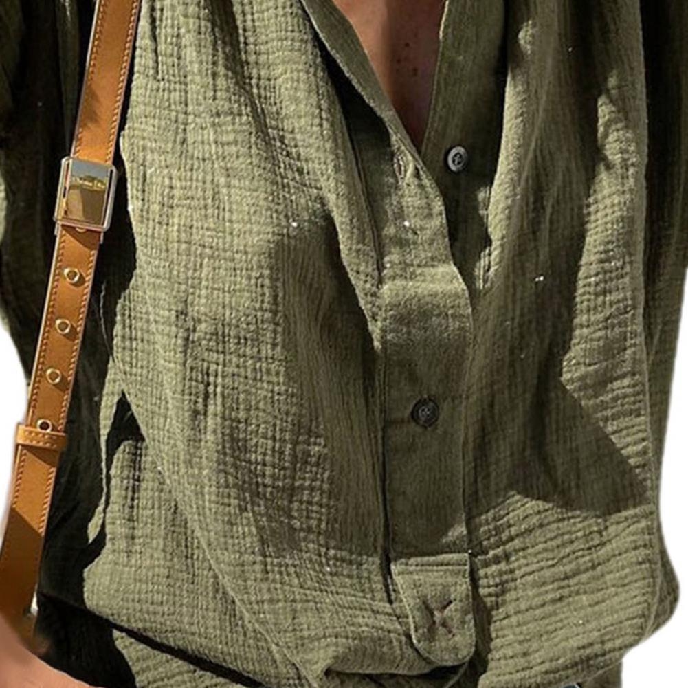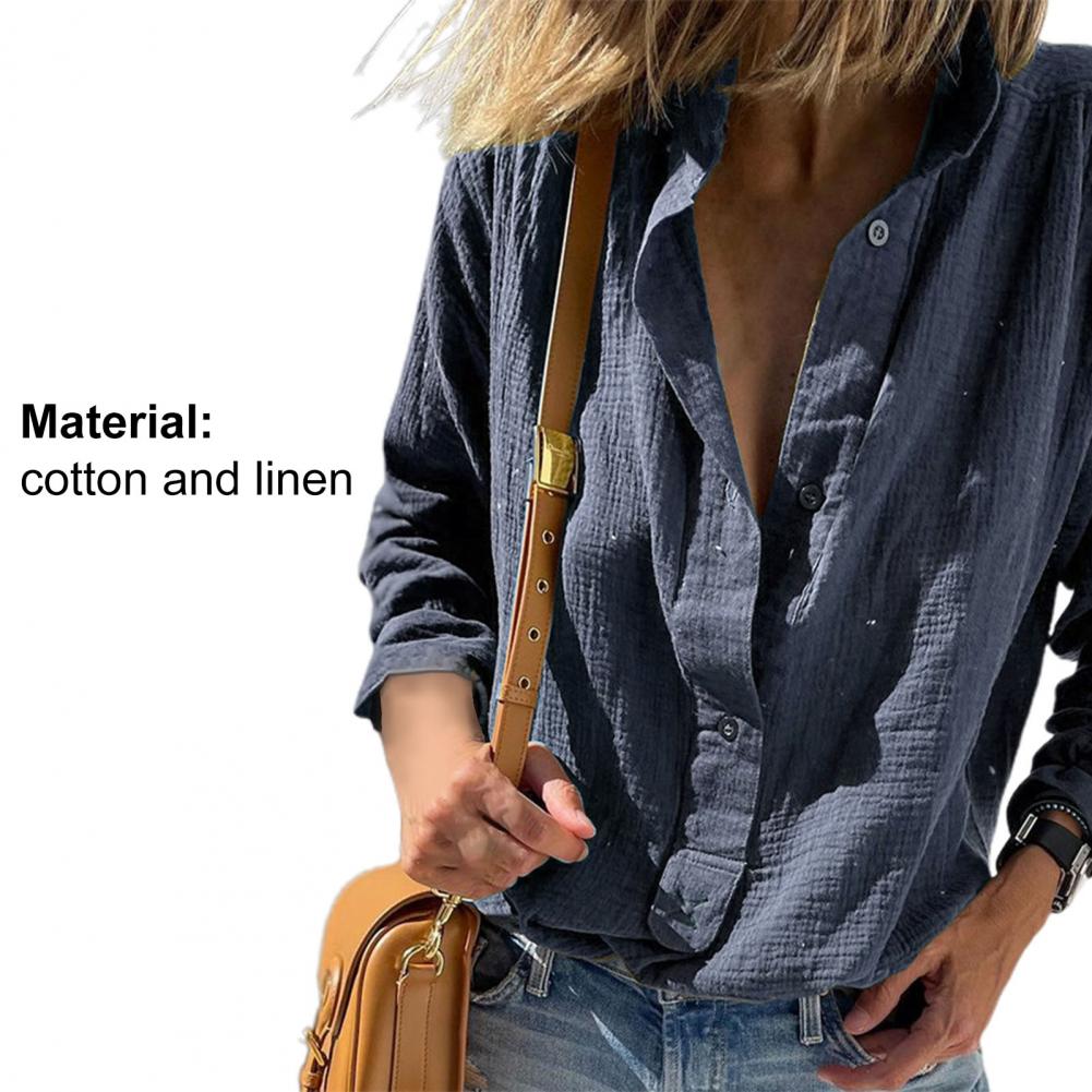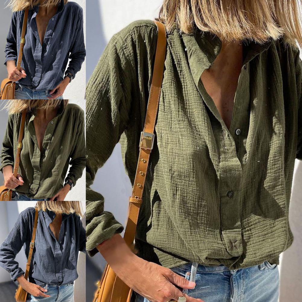 Женская Популярная Однотонная рубашка с отворотом, женская Свободная рубашка для повседневной носки