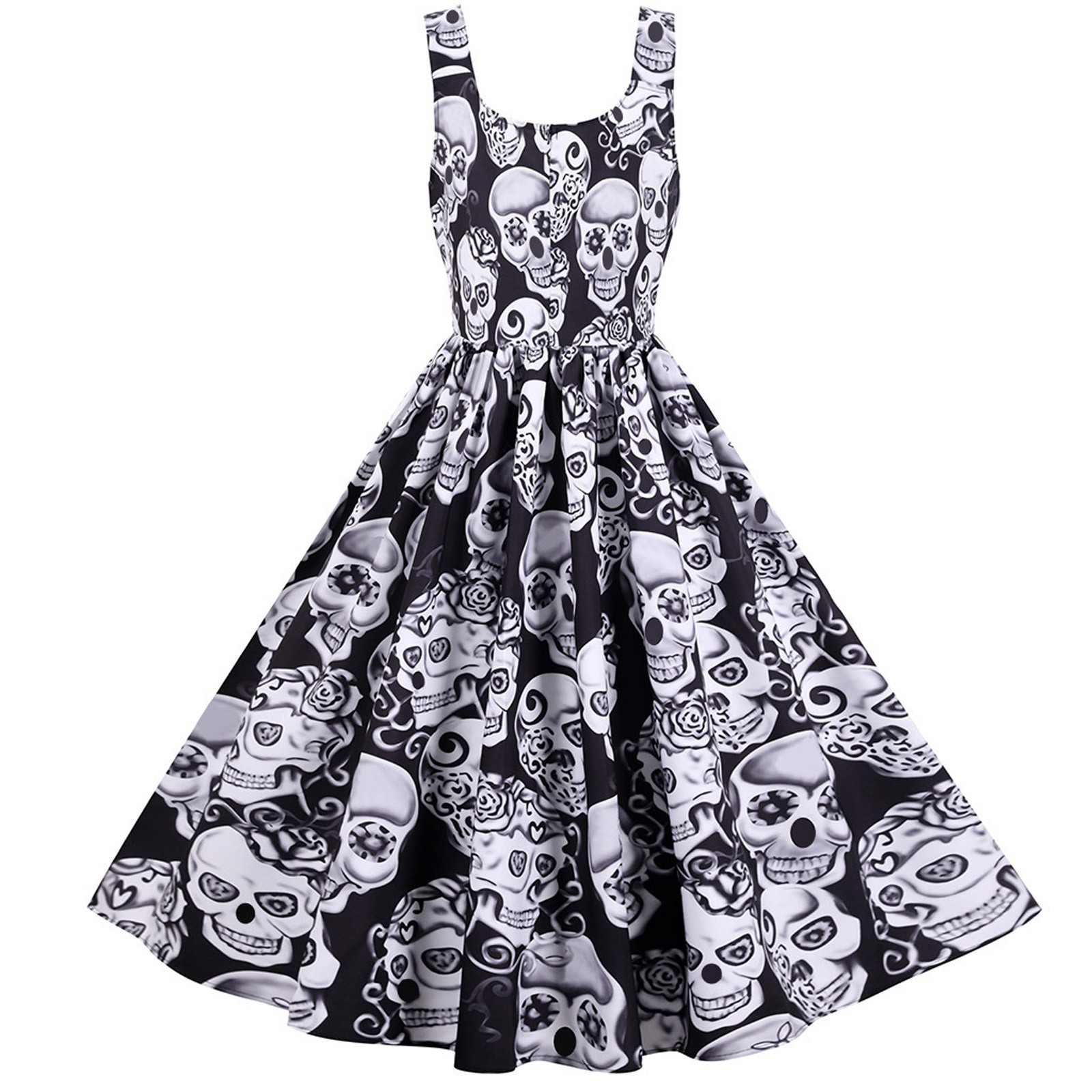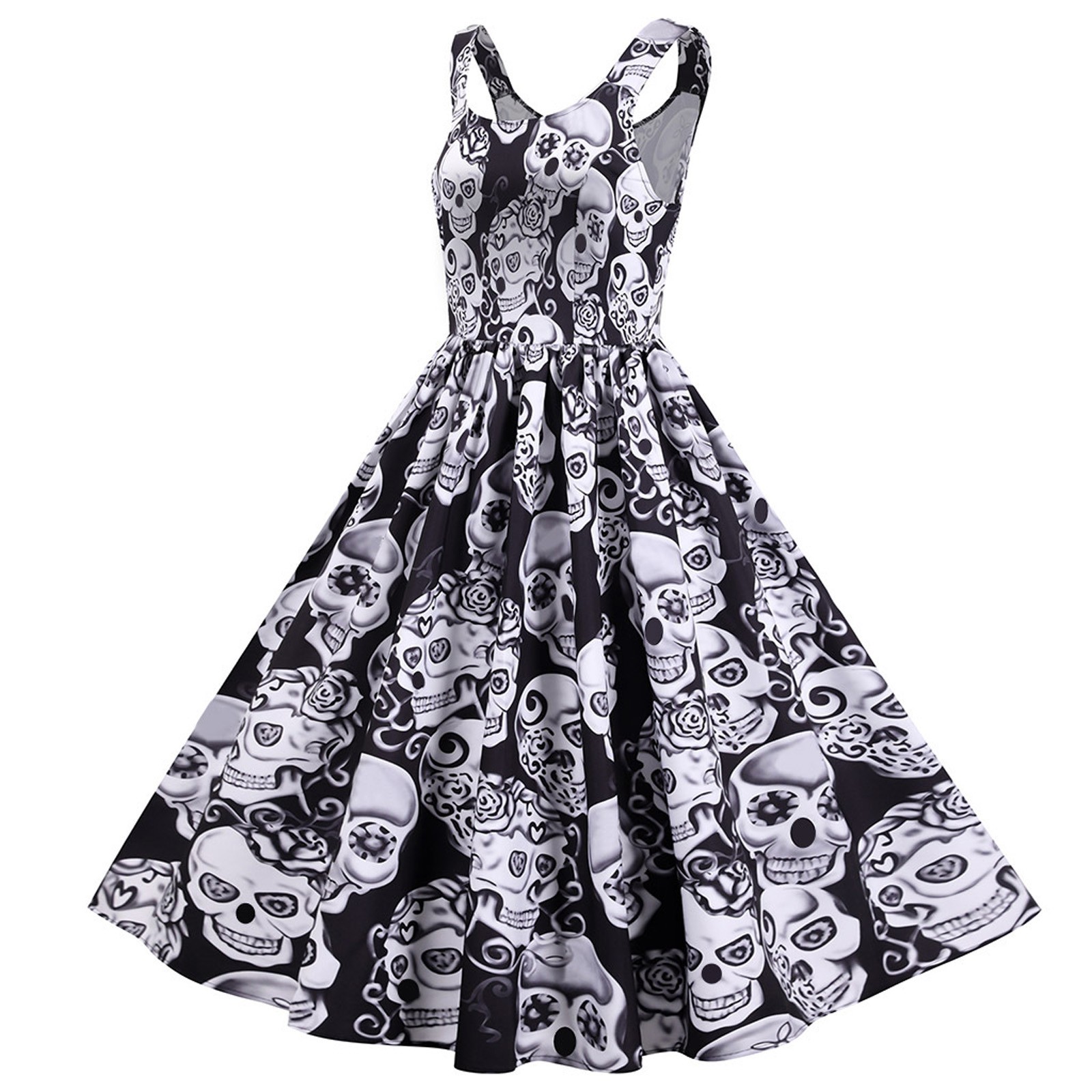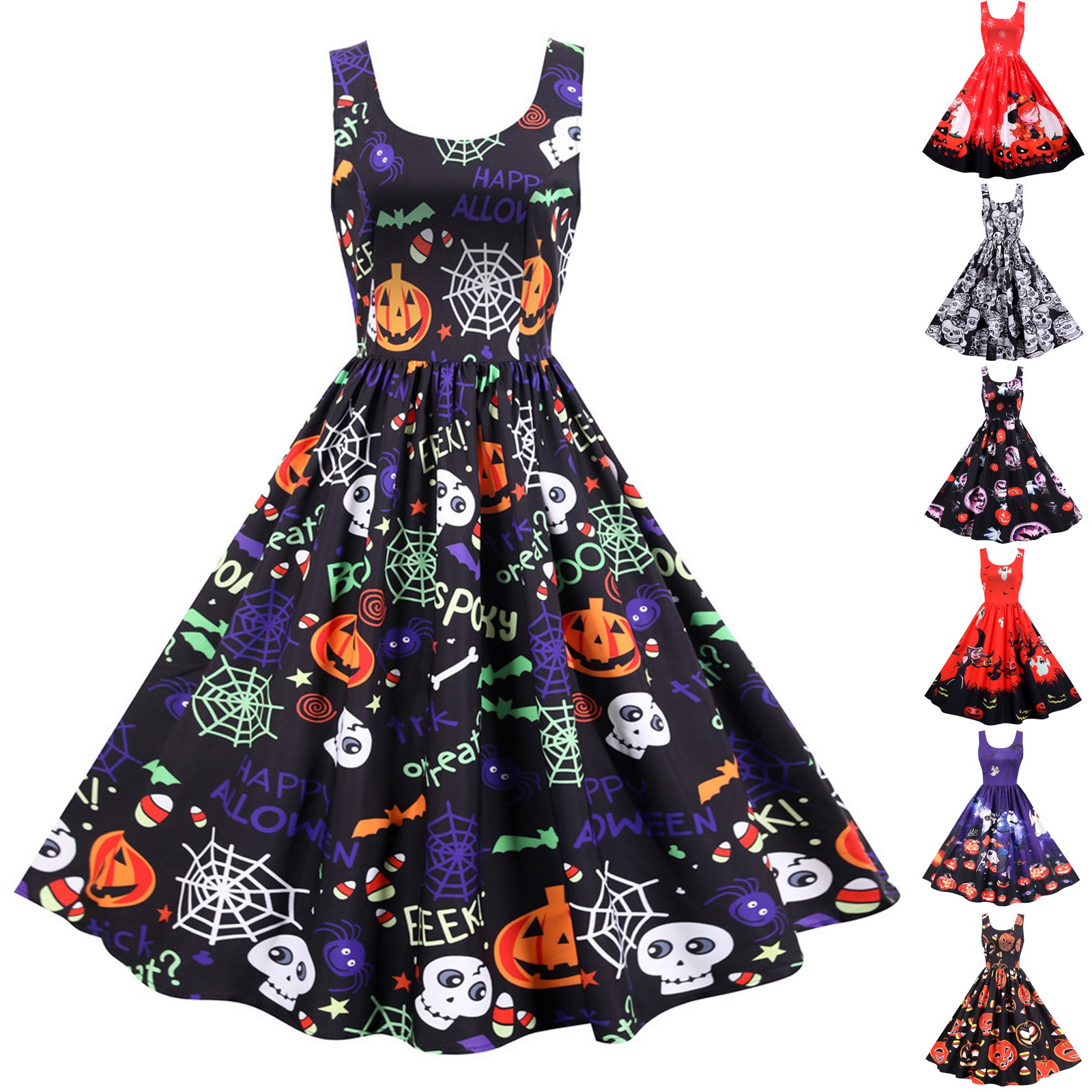 Модные женские винтажные вечерние платья без рукавов с принтом на Хэллоуин