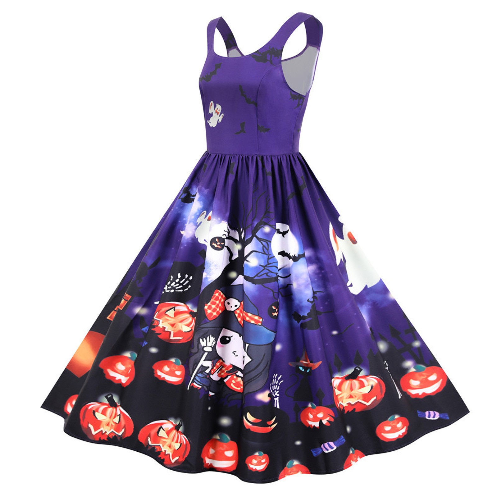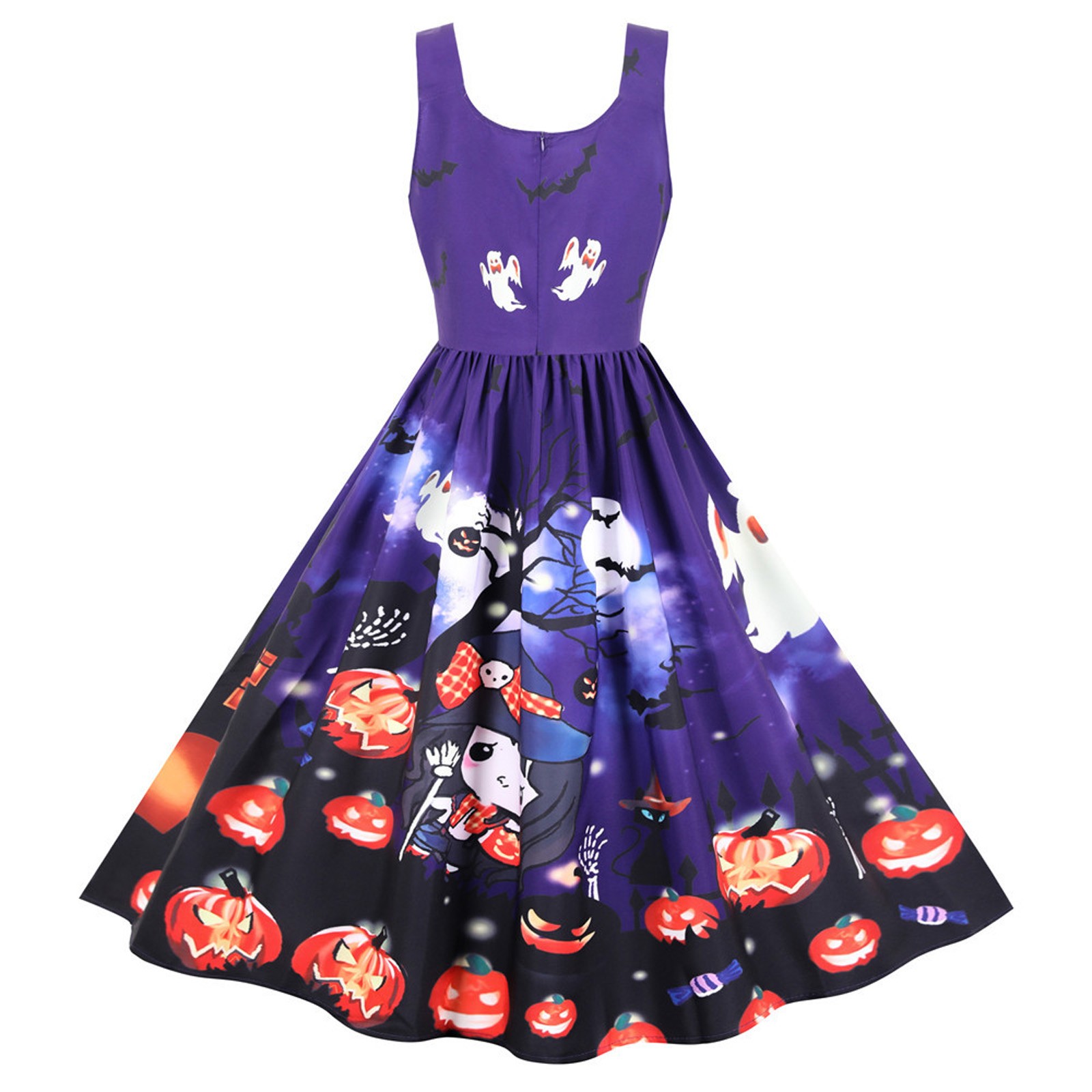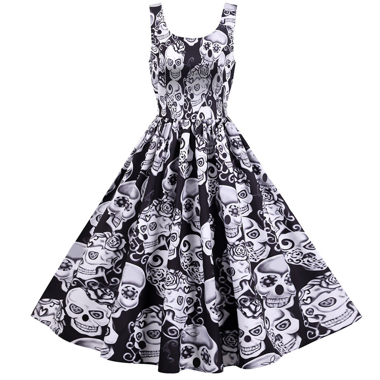 Модные женские винтажные вечерние платья без рукавов с принтом на Хэллоуин
