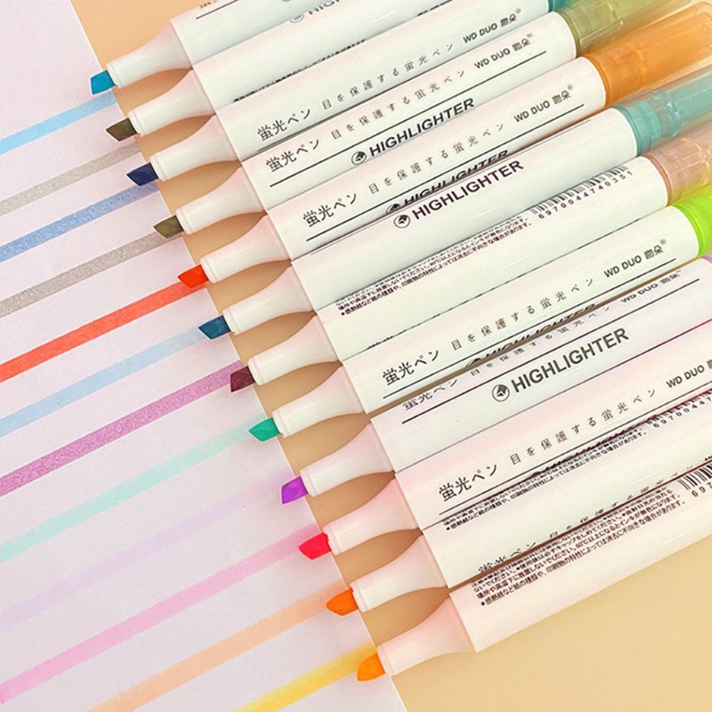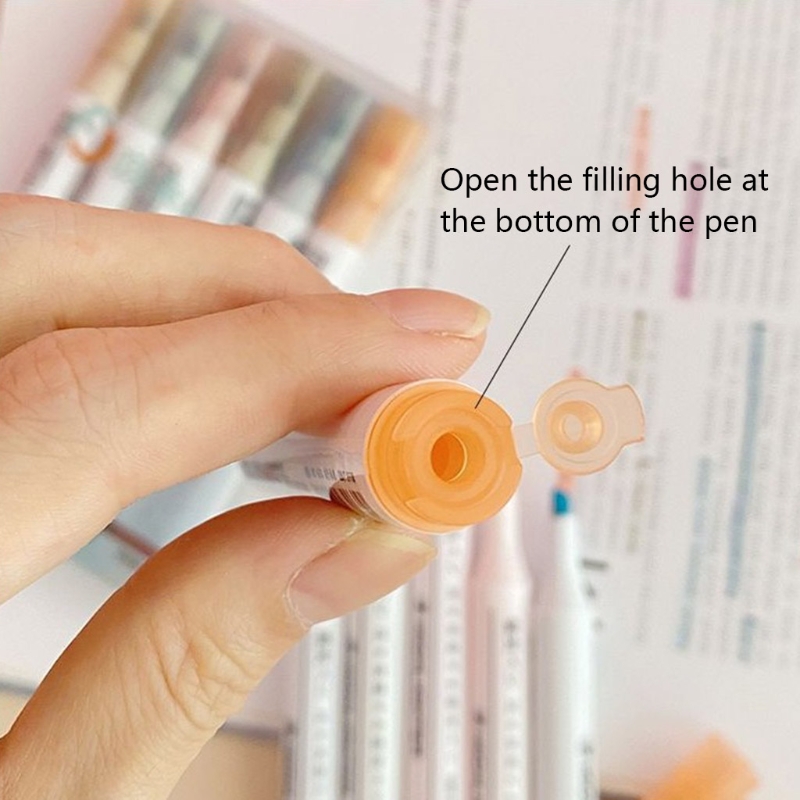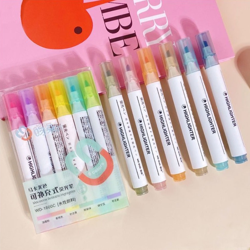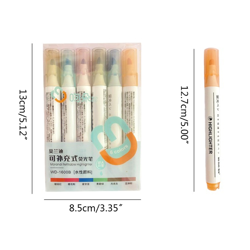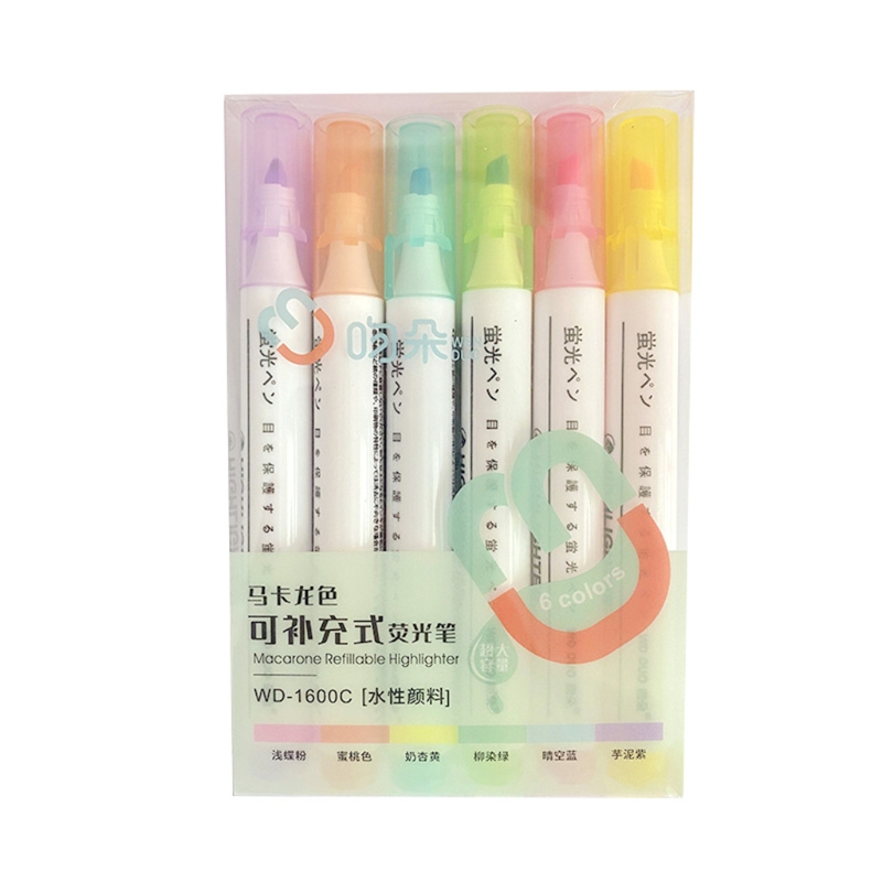 6 Pcs/Pack Refillable Colored Markers 6 Colors Oblique-tip Highlighters Sets 87HC
