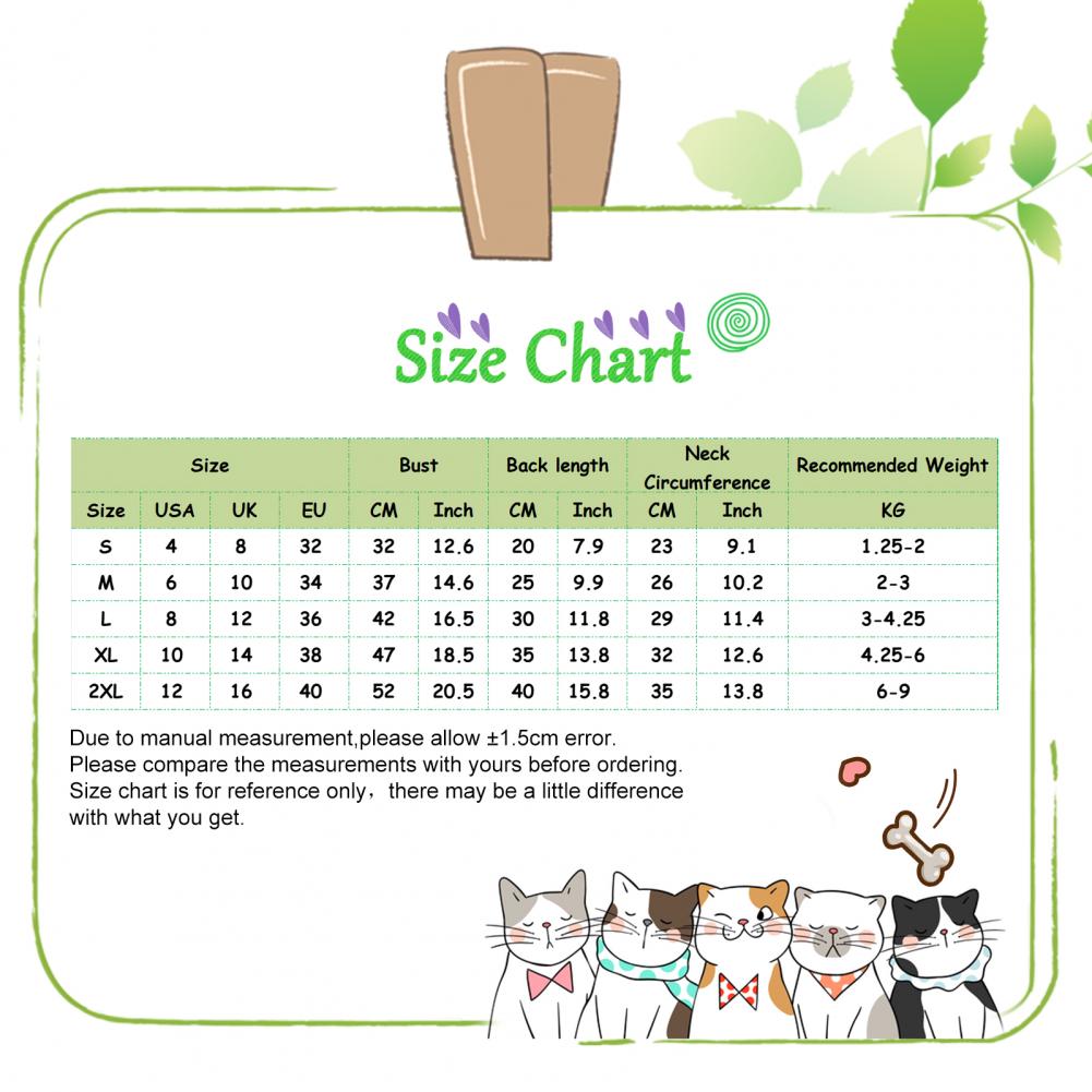 Размеры: 2XL, Бюст: 52 см/20,5 '', Длина: 40 см/15,8'', окружность шеи: 35 см/13,8 '', рекомендуется Вес: 6-9 кг (прибл.)