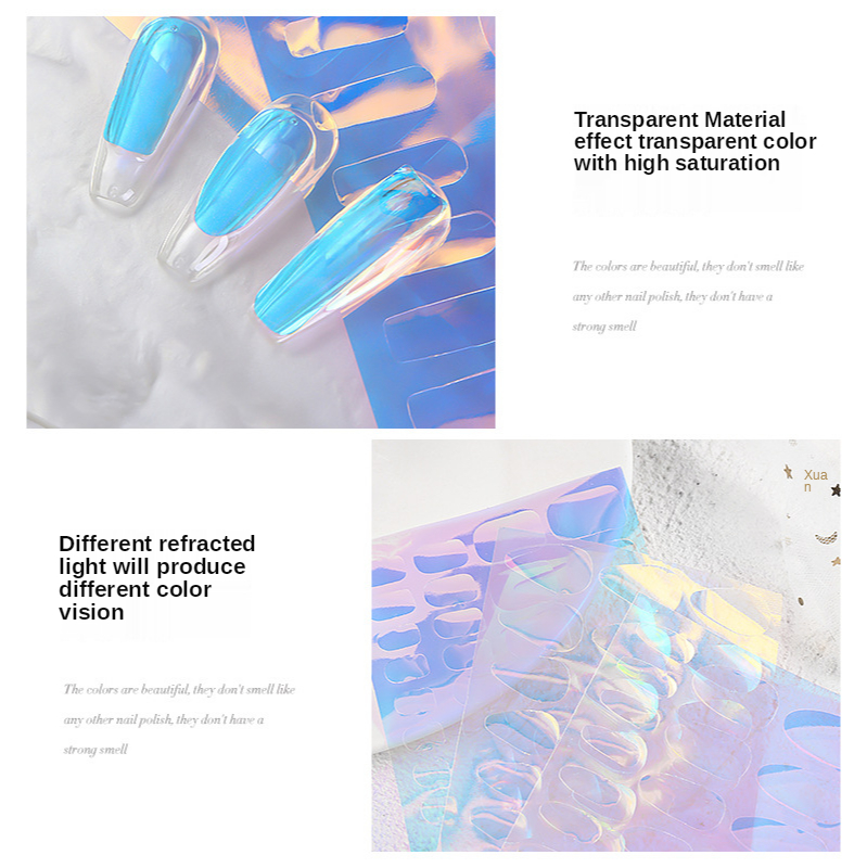 6 стилей, прозрачный цветной материал ПВХ, разные цвета будут отображаться под разными углами, делая ваши ногти сверкающими и движущимися, очень красивыми