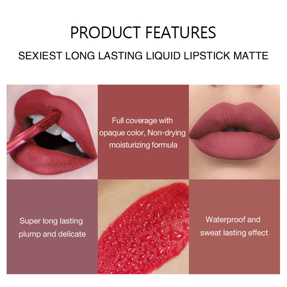 Набор жидкой помады, набор блесков для губ, матовая губная помада, бархатистая жидкая губная помада, Набор губной помады, водостойкая, антипригарная чашка, долговечная, не выцветает, Макияж для губ, женский подарок для девочек, красота