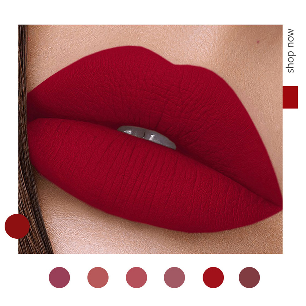 【 6 в 1 】 6 цветов Набор бархатной жидкой помады, полноразмерный блеск для губ самых популярных цветов. Очаровательная Матовая, долговечная и водонепроницаемая, не прилипает к чашке, не выцветает.