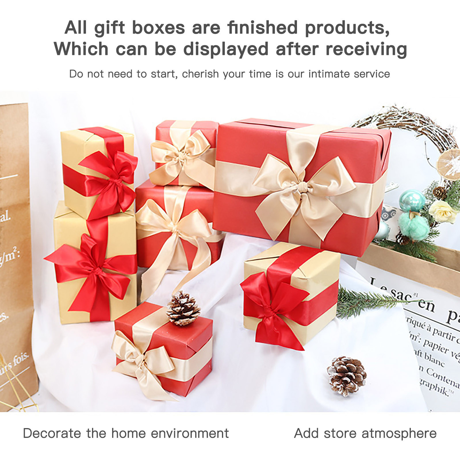 Готов к использованию:Рекомендуем сложить изысканные подарочные коробки декора, Расположите их бок о бок под причудливой и изысканной рождественской елкой или спереди Крыльцо.